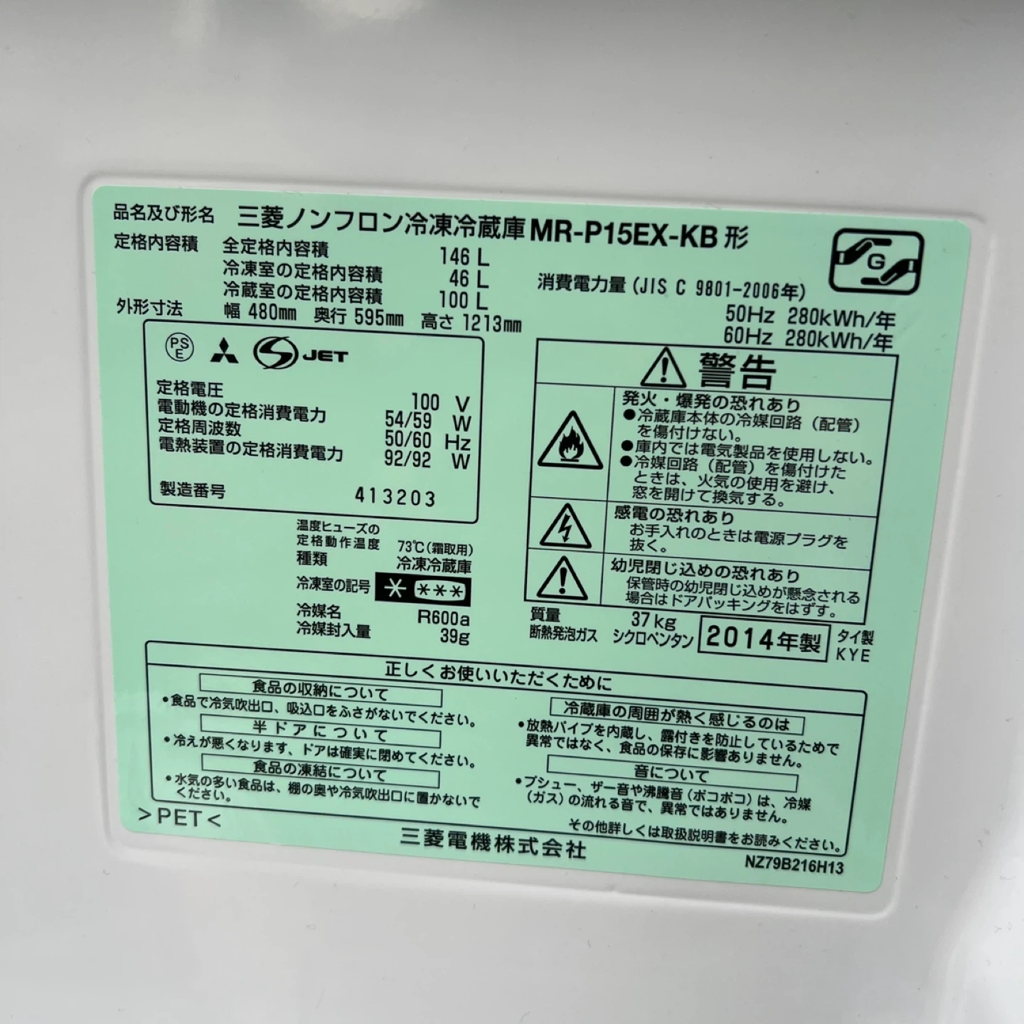 横浜市内であればプラス1,000円で配達可能です! 予定が合えば多少離れたエリアでも配達可能です。 ※その他地域はコメントにてご相談くださいませ! 146L冷蔵庫・5.0Kg洗濯機 引っ越し/一人暮らし 同棲 単身赴任 家電セット ⚫︎冷蔵庫⚫︎⚫︎⚫︎⚫︎⚫︎⚫︎⚫︎⚫︎ 三菱電機 MITSUBISHI ELECTRIC MR-P15EX-KB 冷蔵庫 (146L・右開) 2ドア 単身赴任 一人暮らし 同棲 新生活等 商品仕様外形寸法(mm):幅480×奥行595×高さ1,213 定格内容積(L):合計:146 ・冷蔵室:100 ・冷凍室:46(食品収納スペースの目安:33) 質量:37kg 右開き ⚫︎洗濯機⚫︎⚫︎⚫︎⚫︎⚫︎⚫︎⚫︎⚫︎ メーカー :Panasonic/パナソニック 型式 :NA-F50ME1 洗濯容量 ;5.0kg 年式 :2014年式 外形寸法 :横幅56.2cm×奥行57.2cm×高さ88.0cm [機能] ●ビックウェーブ洗浄 ●送風乾燥 ●槽洗浄 ●槽カビ予防 ●ステンレス槽 ●デジタル液晶表示 ■ 動作確認済み 使用に伴う傷や汚れ、ヘコミ等はありますがまだまだ使用可能です! 中古品をご理解の上ご検討下さいませ!