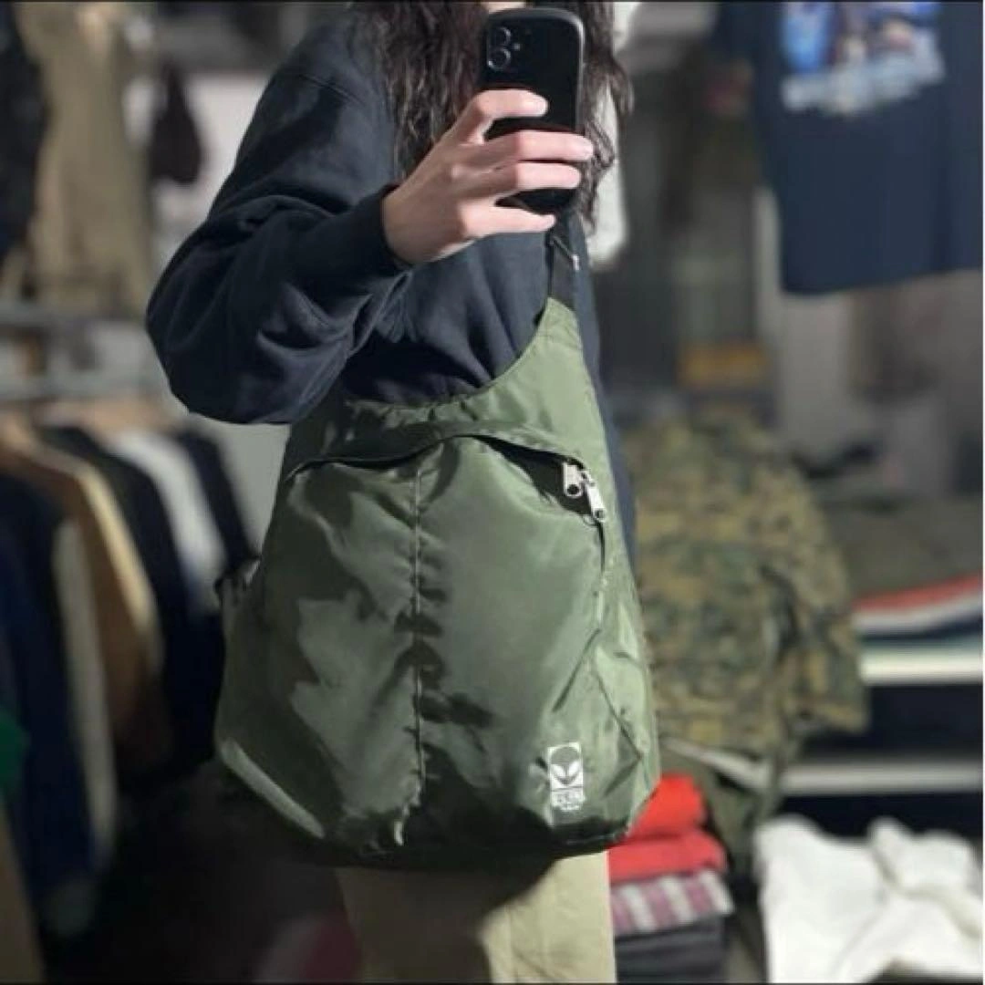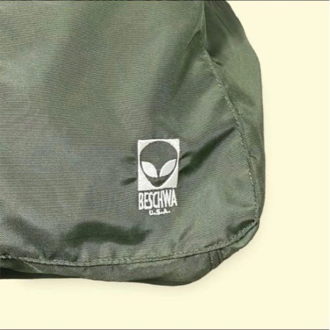90年代に一世風靡したエイリアンモチーフのブランド"BESCHWA"のショルダーバッグです。 マチのある正方形で、体サイドにフィットするようなデザインです。 ベルト部分は長さ調節可能です。 【素材】 ・表記なし(ナイロン) 【色】 ・オリーブグリーン 【状態】 ・とくに目立つ汚れダメージもなく良好です。 【サイズ】 ◼︎表記  ・なし ◼︎実寸(平置きにて/単位 cm) ・縦:35 ・横:36 ・マチ:11 ご希望の方はお気軽にご連絡ください。