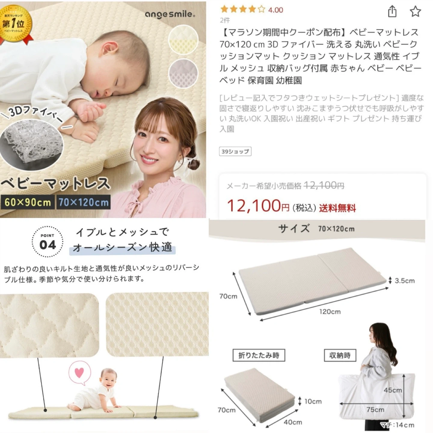 ★2025年購入!定価12100円!★ベビー布団 ベビーマットレス 洗える 固綿敷布団 固め ちゃいなび 西松屋