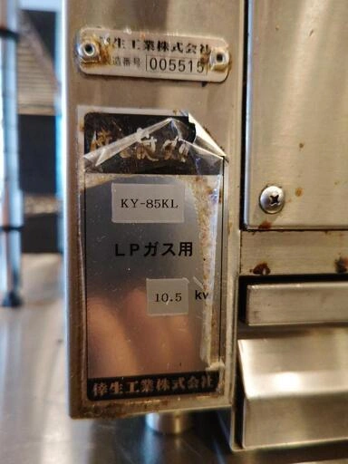 メーカー:倖生工業 型番:KY-85KL ガス種:プロパン 居酒屋の稼働引き上げ品になります。 動作確認済 引き上げ現状品・現状渡しです。 お取引はノークレームノーリターンです。