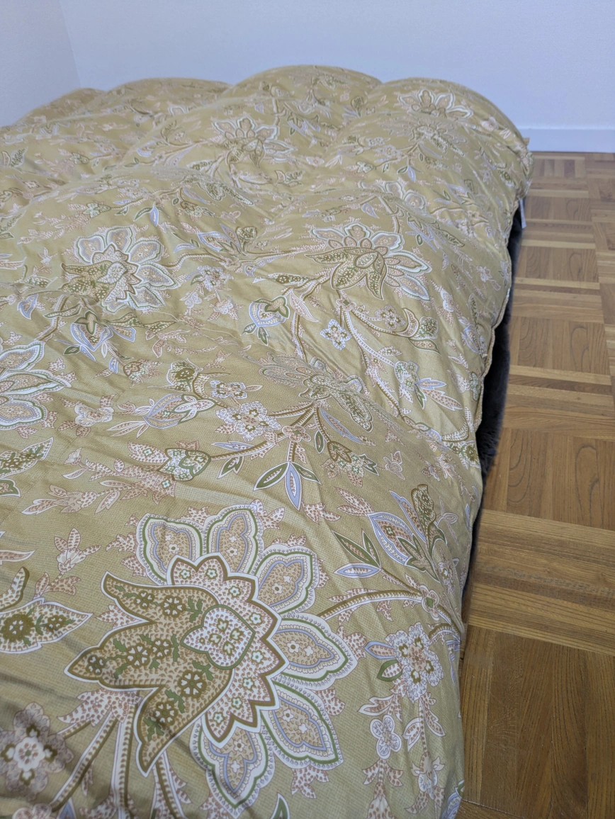 軽量で快適 GORE 羽毛掛け布団 150×210cm 花柄ベージュ 冬に向けて早めのご準備を! 【定価】220,000円 出品価格 113,900円 23日㈫までの限定価格 30%OFF!! こちらは、軽量で快適な羽毛掛け布団です。 サイズ150×210cm 重さ1.2kg 素材ダウン95%、フェザー5%。 収納袋付き さらっとした肌ざわりで、一年を通して快適にご使用いただけます。 布団の状態は良好です。 未使用であり丁寧に保管しておりましたので安心してお使いいただけます。 本商品は、店頭でサンプルとして使われていましたが新品・未使用に近いです。私自身は一度も使用していません。 この点ご理解ください。 他サイトへも出品しますので気になる方は早めにご検討ください。 ご不明点はお気軽にお問い合わせください。