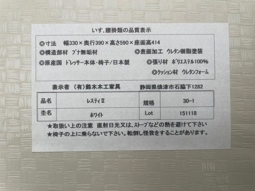 商品の状態は個人の感じ方により変わると思いますので、参考程度にお考えください。 清掃はしておりますが、写真では確認しづらい傷や汚れがある可能性があります。 写真の情報が全てです。 中古品にご理解頂けない方はご購入をお控えください。 返品やキャンセルは受け付けておりません。 【お渡し場所】 横浜市港南区 コンパクトで軽量なチェアです。背もたれ付きで座りやすく、座面はクッション入りで快適な座り心地です。ダイニングやデスク用、子供用など幅広いシーンで活躍します。 主な仕様: • 外形寸法:約 幅330×奥行390×高さ590mm • 座面高:約 414mm • 材質:木製フレーム、布張り座面(クッション付き) • カラー:ホワイト(フレーム)× ベージュ(座面) • 重量:軽量設計(持ち運び簡単) 特徴: • コンパクトサイズで省スペースに最適 • 座面クッション付きで長時間でも快適 • ホワイトフレーム×ベージュ座面のナチュラルデザイン • 軽量設計で移動やレイアウト変更がラク • ダイニング、デスク、子供部屋など多用途に活躍 ご希望の方はお気軽にご連絡ください。