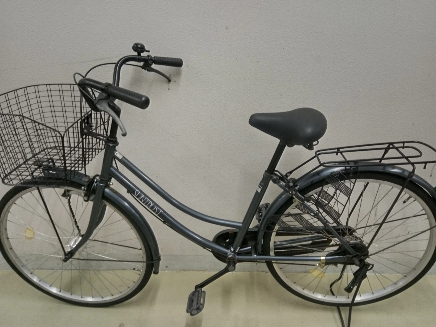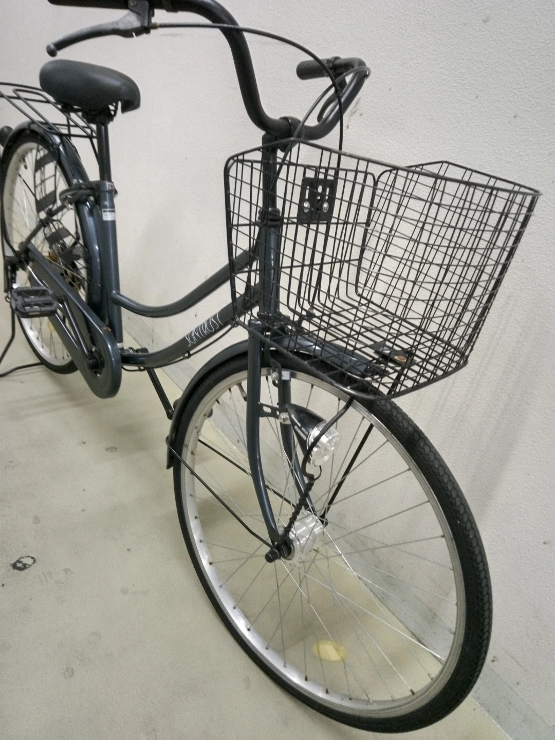シティサイクルです。26インチ 変速なし 黒いグレー色 少しサビ、キズがありますが、全体的にはとても綺麗です。 変速なしですが、坂道も楽で快適に走行できます。 簡易点検・整備済み。直ぐに乗れます。 サイズ 26インチ。適応身長145~ サドル上下に稼働します。 変速 なし ・自動で点く明るいオートライトです。 ・便利な後輪サークル錠で鍵は1本。 ・安定感ある両立スタンドです。 ・前後泥よけ後部キャリアあり。 ・タイヤ山、前後8分程度。劣化なし。 ・英式バルブ、普通の空気入れで入ります。 ・前カゴ付きで、買い物に便利です。 防犯登録なし。譲渡証明をお渡しします。 ご購入前提で、自転車走行30分程度なら送料無料でお届けします。 中古品であることをご了承ください。