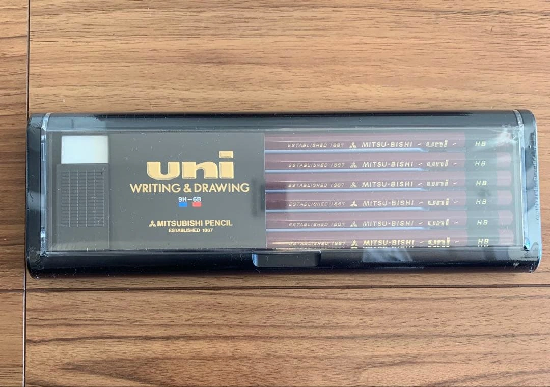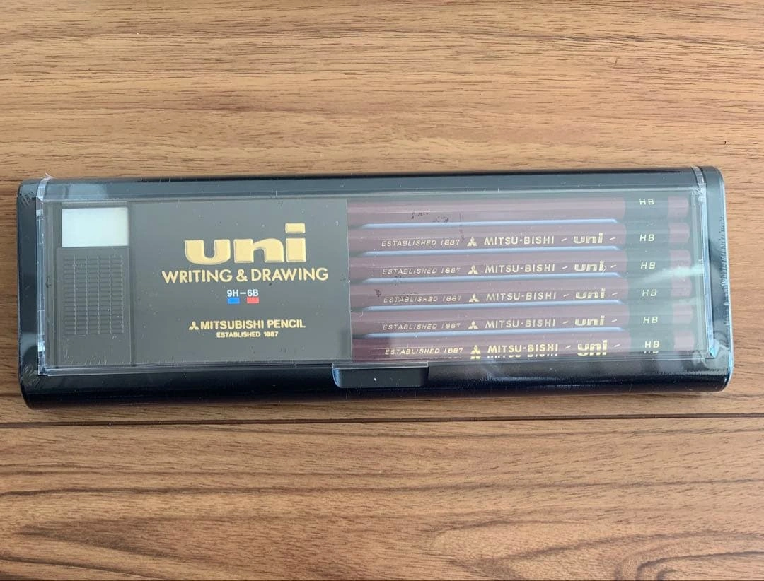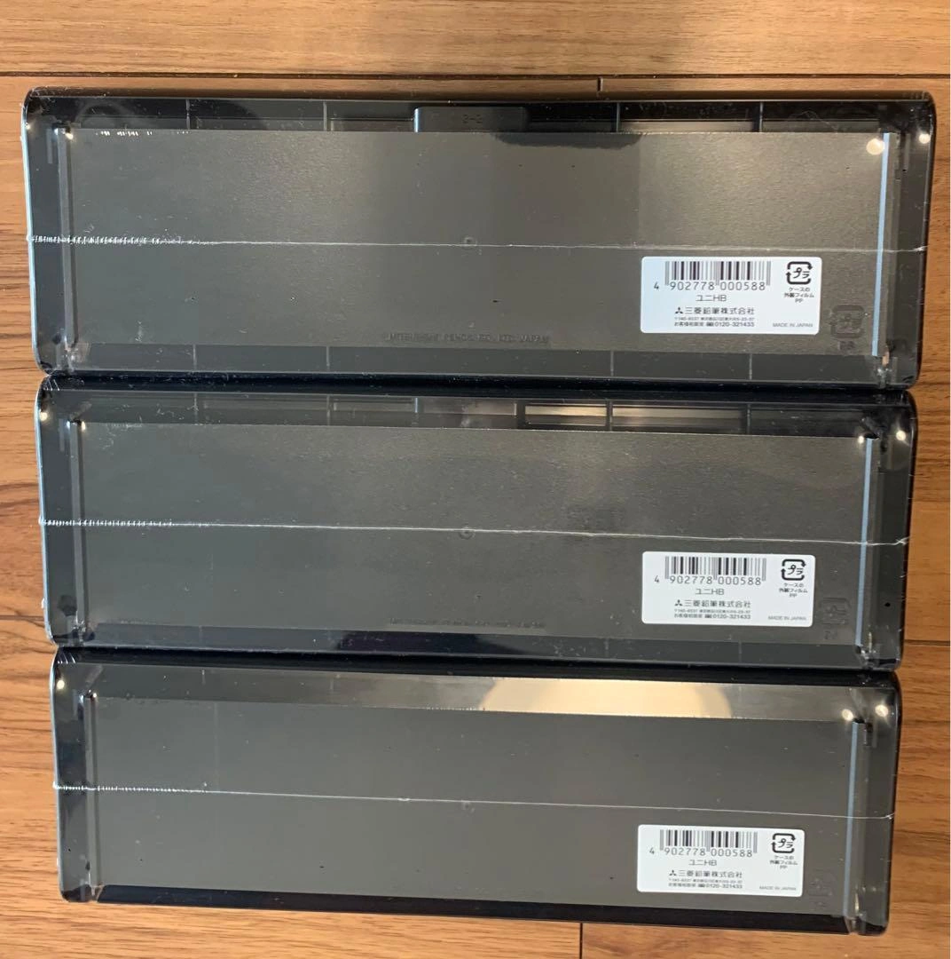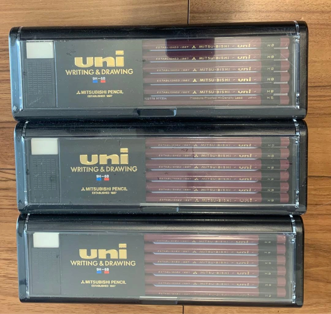 三菱鉛筆のユニHB 1ダース12本と消しゴム1個のセットが3つです。 新品未使用品です。 プラスチックのハードケースに入っています。 国内メーカーならではの品質の良さがあり、書きやすさ、折れにくさ、芯の品質は三菱鉛筆ユニならではの魅力です。 新品・未開封ですが、素人の自宅保管ですので神経質な方のご購入はお控えください。 写真3枚目と4枚目のように外装透明ビニルは少し傷がついており、素人なので、他にも見落としがあるかもしれません。ご理解くださる方のみのご購入をお願いいたします。 ご希望の方はお気軽にご連絡ください。