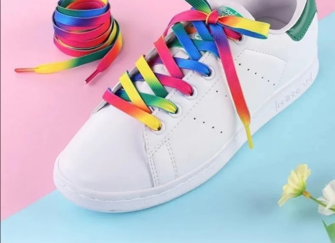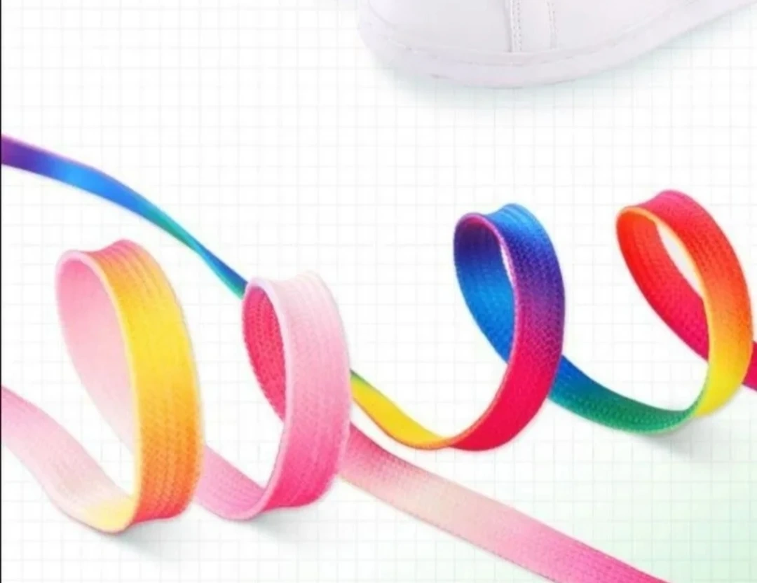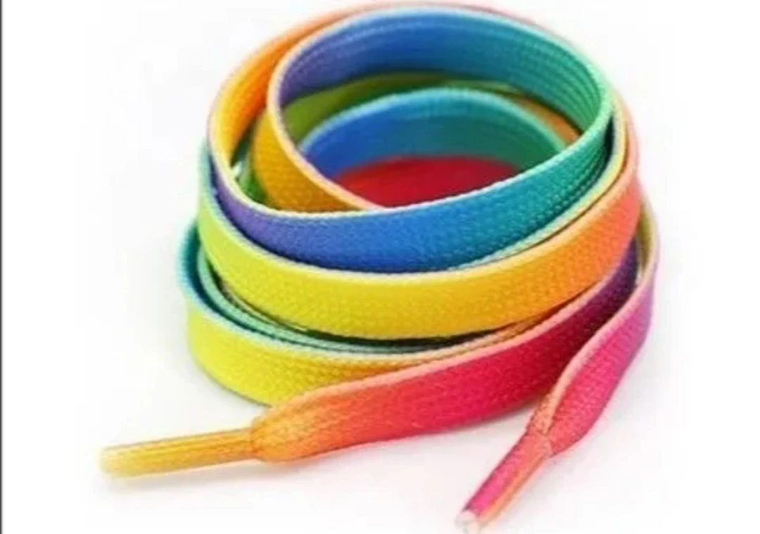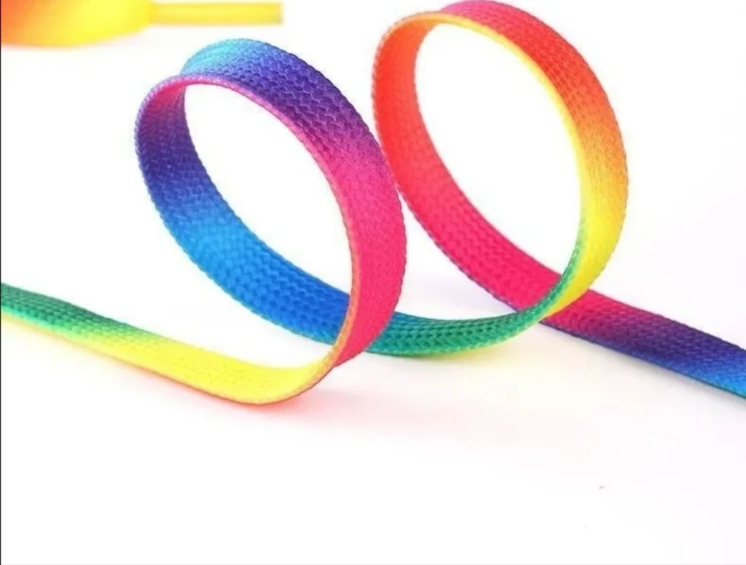 3足分120*0.9cmレインボー靴紐 グラデーション シューレース 平紐 靴ひも カジュアル スニーカーなど