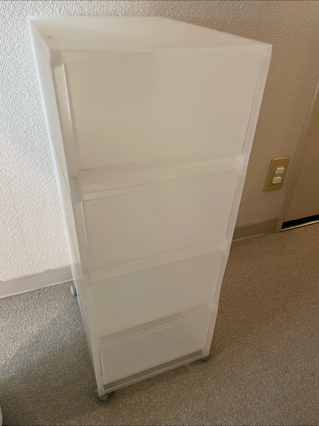 無印ポリプロピレン引き出し ワイド 旧型廃盤 無印の引き出し4段になります 使用による小傷や歪みあります