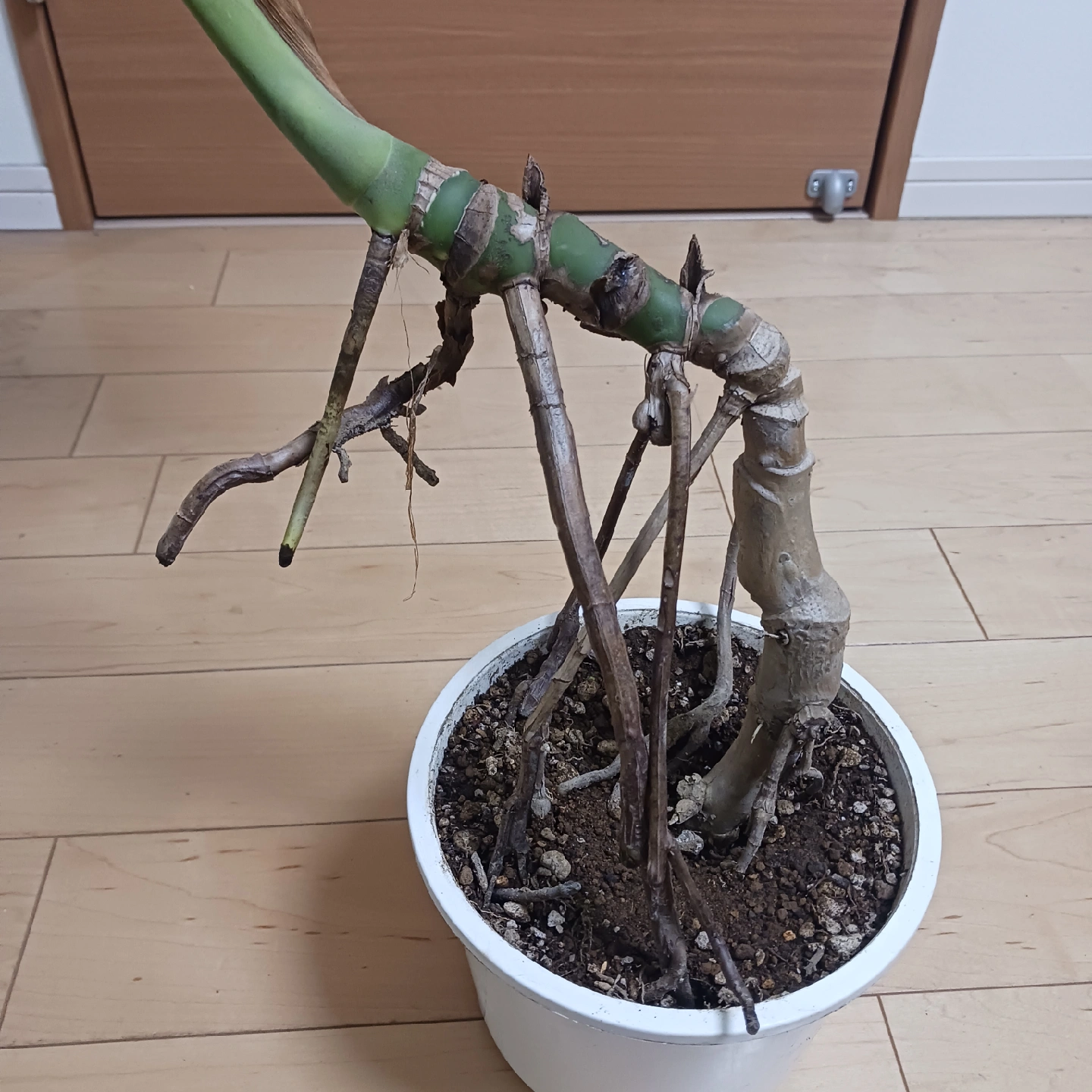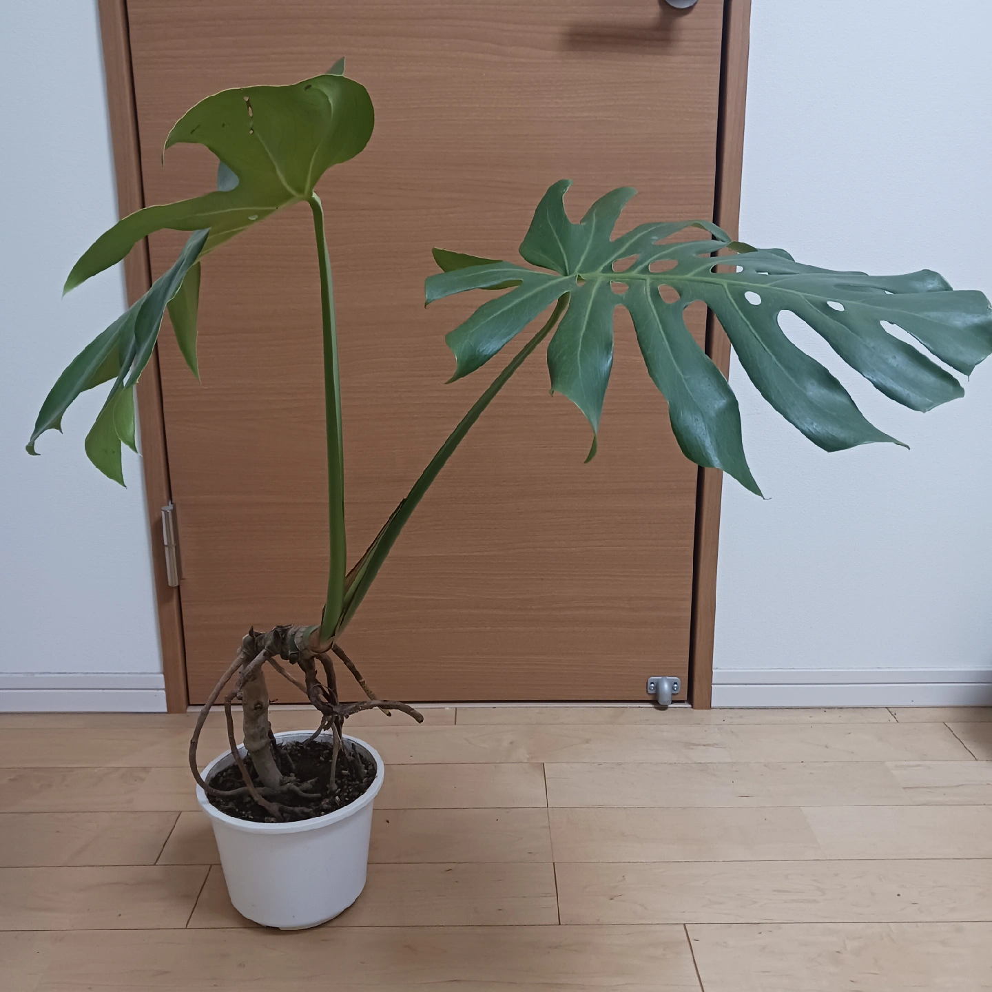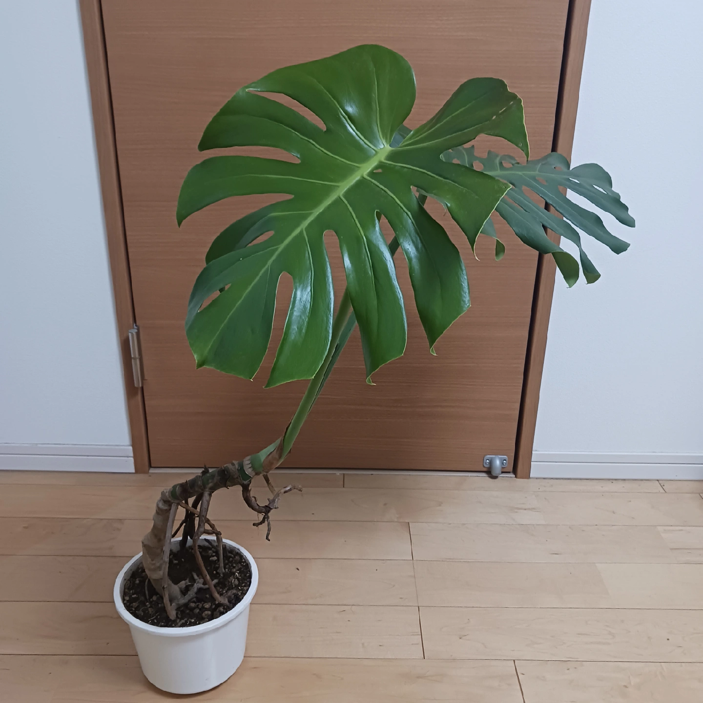 あたたかさ人気のある幹上がりのモンステラです。 一部木質化したしっかりとした幹から気根 が出ています。 葉の一部に傷で穴あり 《鉢サイズ》 6号鉢(直径18cm × 高さ13cm) 白のプラ鉢 《植物サイズ目安(鉢込み)》 横幅:約75cm × 高さ:約75cm 《撮影日》 2025年10月23日 《置き場所》 ・風通しのよい室内または屋外の明るい場所 《水やり》 ・室内管理の場合は土の中まで乾いてから、たっぷりと与えてください ・冬場に置く場所の温度が15℃以下になる場合は、水やり回数を減らし、やや乾燥気味にします