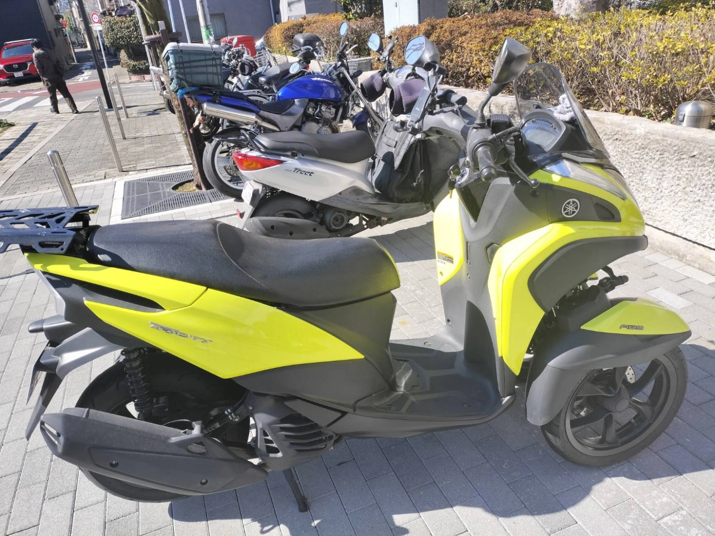 【GW6日までのお取引で20万円にします!】 その後は、市場価格の24万円に戻します。 杉並区に取りに来れる方のみお願いします。 半年ほど前に購入したヤマハトリシティ125 ワイドトレッキング仕様です。 ABS搭載で 【購入時価格】450000円ぐらい 【サイズ】 全長:1,995mm 全幅:750mm 全高:1,215mm シート高:770mm 軸間距離:1,410mm 最低地上高:165mm 最小回転半径:1名乗車時 2.6m 走行距離56000km 【傷などの状態】とくに目立った傷はありません。 【アピールポイント】 ・乗り心地全く問題なし! ・普通車登録してあるので、高速道路もokです! ・ETC搭載! 【希望取引場所】杉並区東高円寺〜新高円寺近辺 【希望取引日時】メッセージください。 ワイトレはしっかり、ジェラルミンのパーツを使用しており乗り心地は雨の日でも安心です! ヘルメットもお付けいたします。 多少の値段交渉は受け付けます! 当方バイク詳しくない事もあり、整備等はそちらでお願いいたします。 購入後の返品受付・保証は一切致しません。 ドタキャンしない方、中古品のためサイズや状態などが目安であることをご了承いただける方のみお問い合わせください。