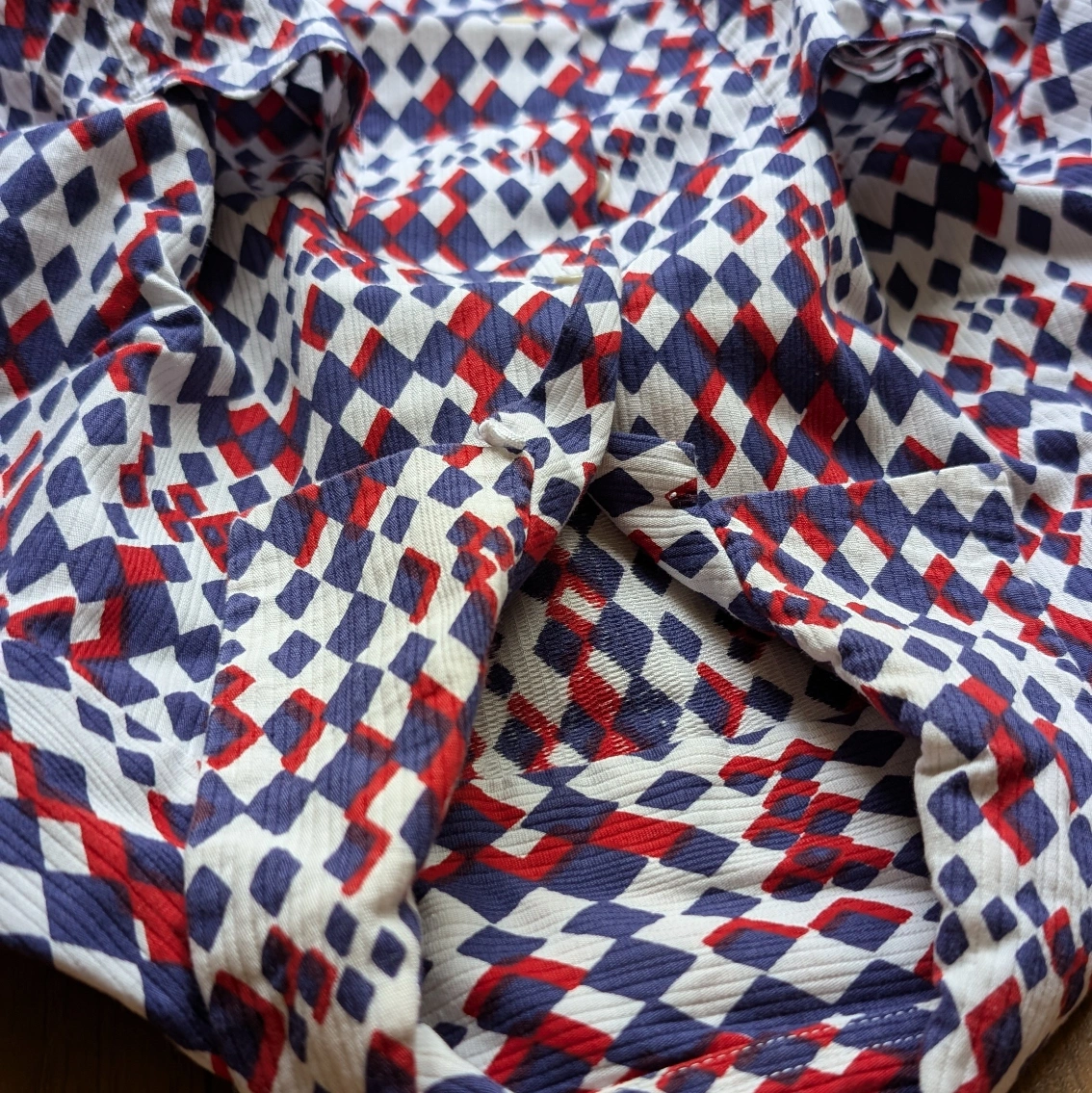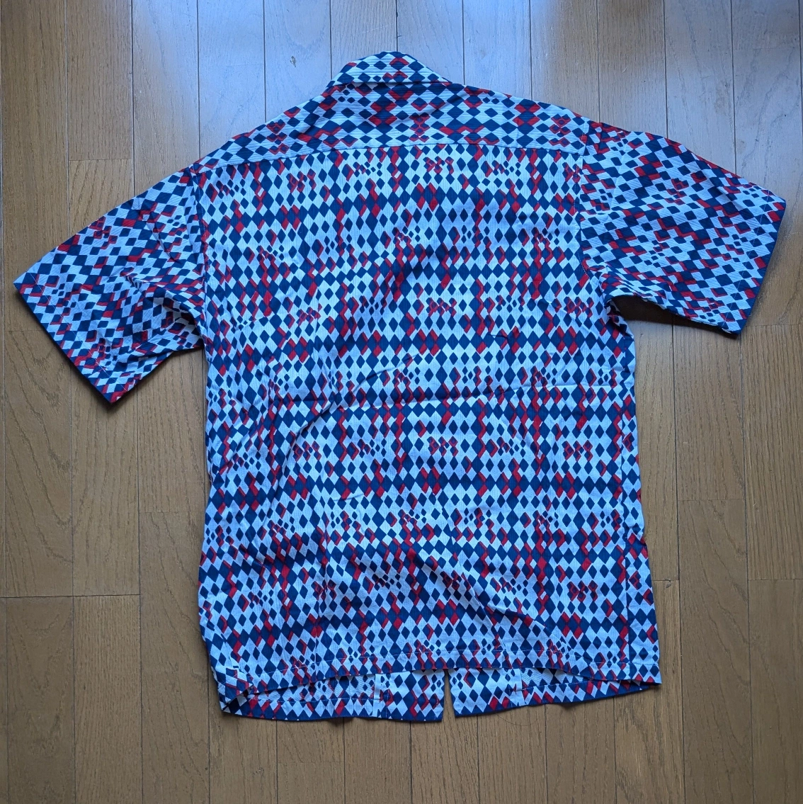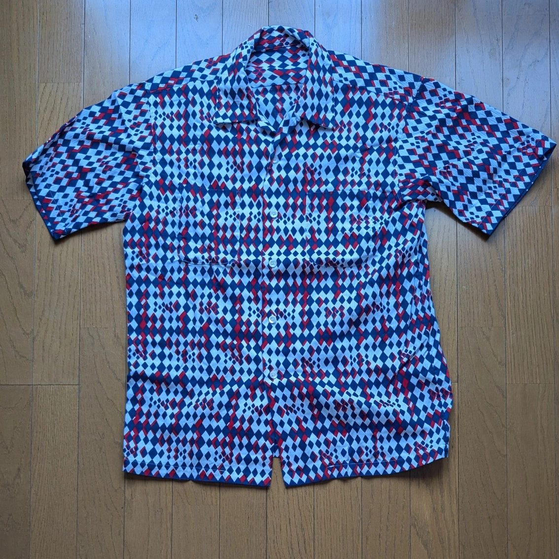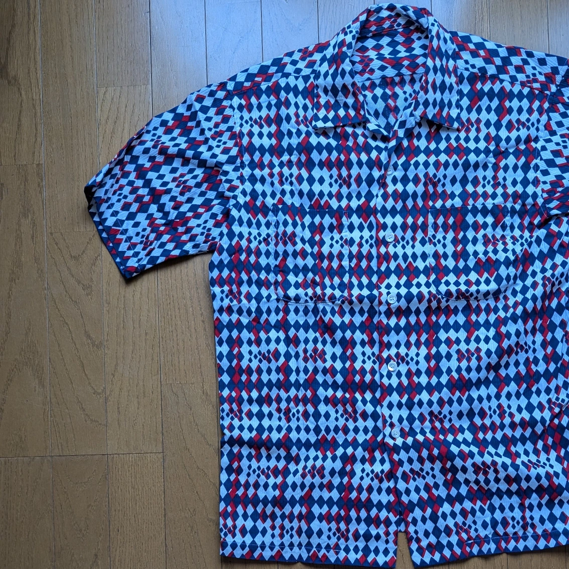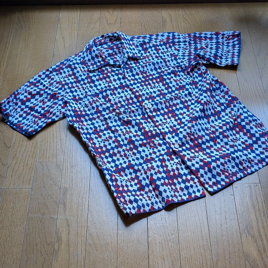 あたたかさ現地の在住していた方から頂いたヴィンテージアロハになります。 アロハには珍しいアーガイル柄で配色も爽やかで被らない一品です。 素材表記がないため不明ですが厚手のしっかりした生地になります。 肩幅...45cm 身幅...46cm 袖丈...23.5cm 着丈...60cm カラー...ホワイト 柄...その他柄
