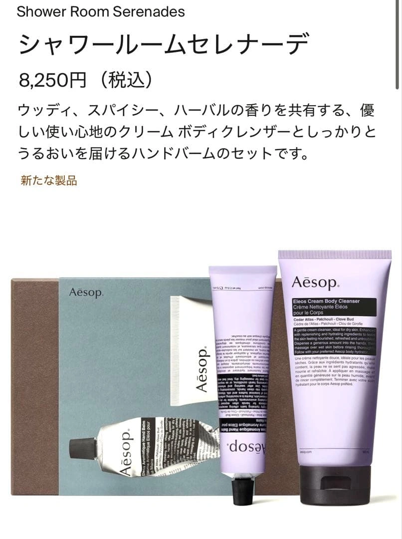 新品未開封です。同じものをいただき使いきれなさそうなので1つお譲りします。 ウッディでスパイシーな香りのハンドクリームとボディクレンザーのセット。 - セット内容: ハンドクリーム、ボディクレンザー - 香り: ウッディ、スパイシー、ハーバル - 付属品: 袋 エレオス クリーム ボディクレンザー 180mL エレオス アロマティック ハンドバーム 75mL ご希望の方はお気軽にご連絡ください。