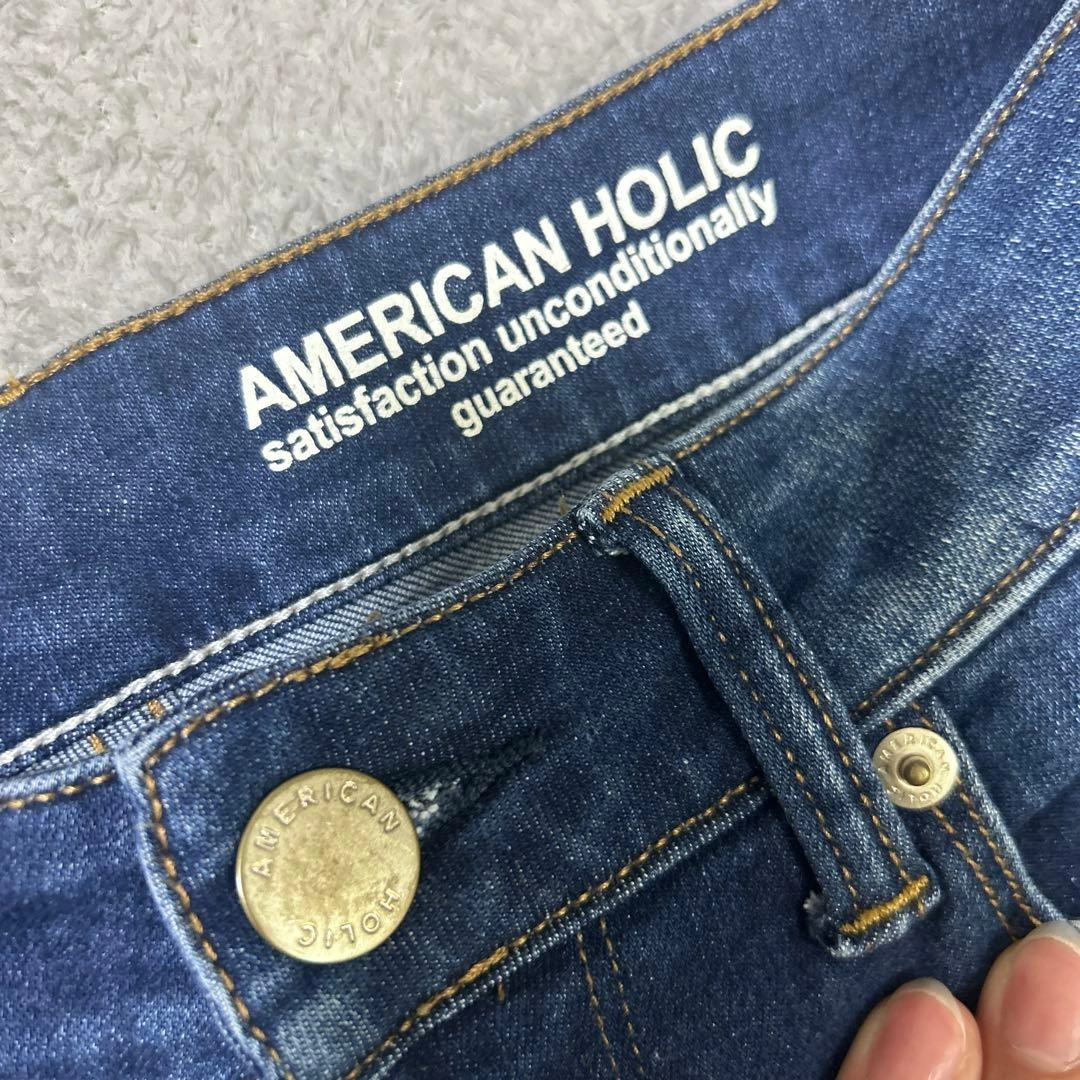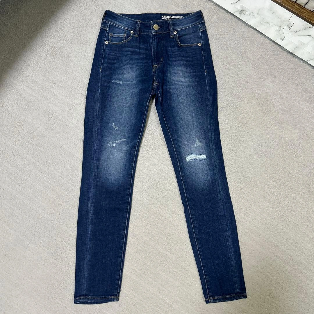 ダークブルーのスキニーデニム、ダメージ加工あり。 ブランド: AMERICAN HOLIC スタイル: スキニーデニム 色: ダークブルー デザイン: ダメージ加工 数回着用ですが、状態よく綺麗です。ご希望の方はお気軽にご連絡ください。