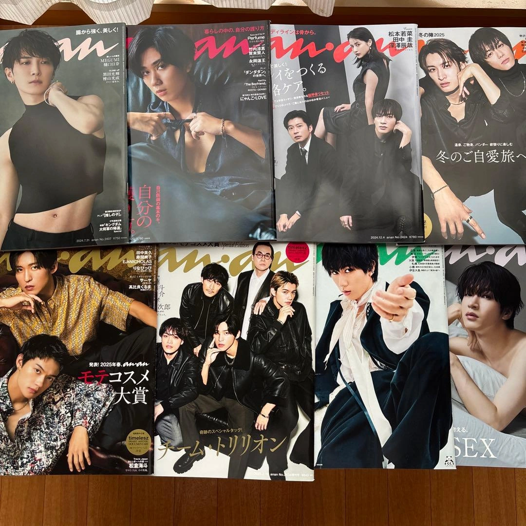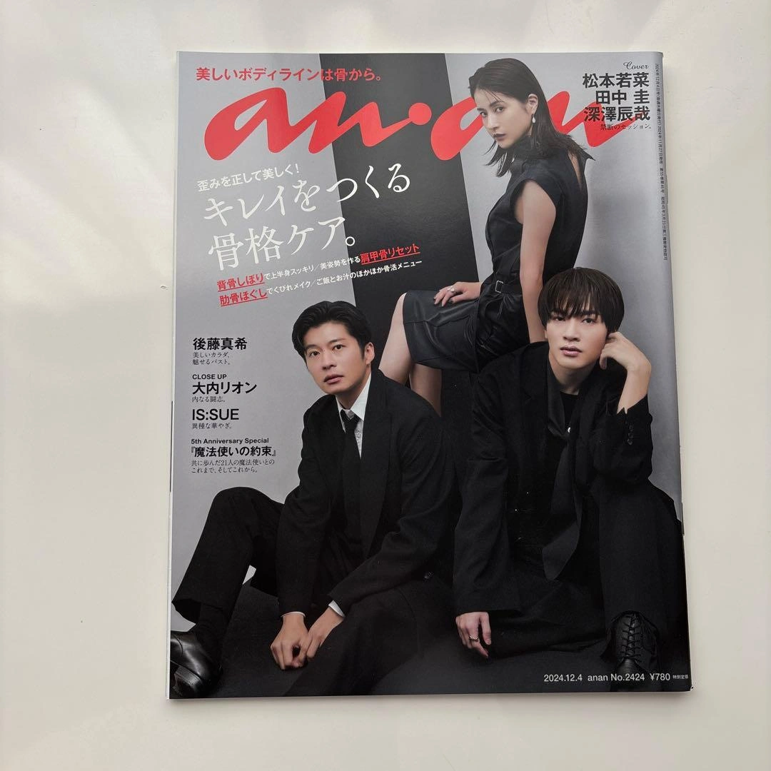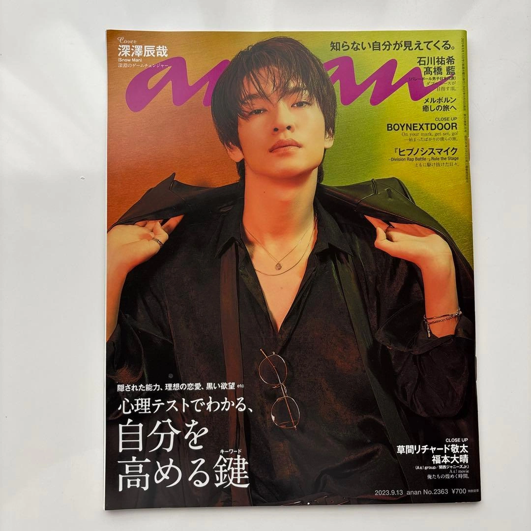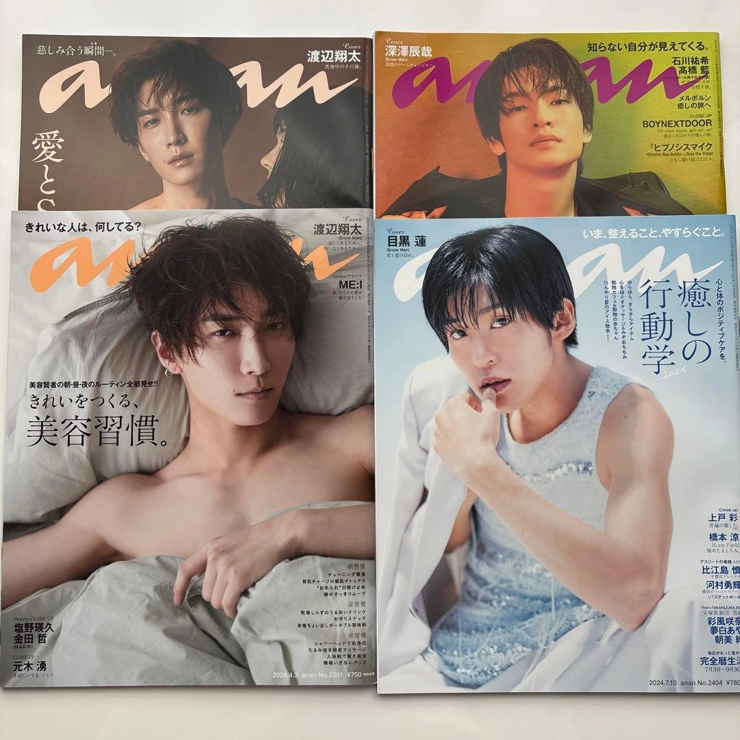 anan(アンアン) 定価: ¥750-×3,¥700-,¥780-×3,¥850-,¥840-×2,¥800-,¥900- #本#SnowMan#渡辺翔太#しょっぴー#深澤辰哉#ふっか#目黒蓮#めめ#阿部亮平#阿部ちゃん#向井康二#こーじ#松本若菜#田中圭#室龍太#佐野勇人#鈴木 浩介#原嘉隆#津田健次郎 ご希望の方はお気軽にご連絡ください。