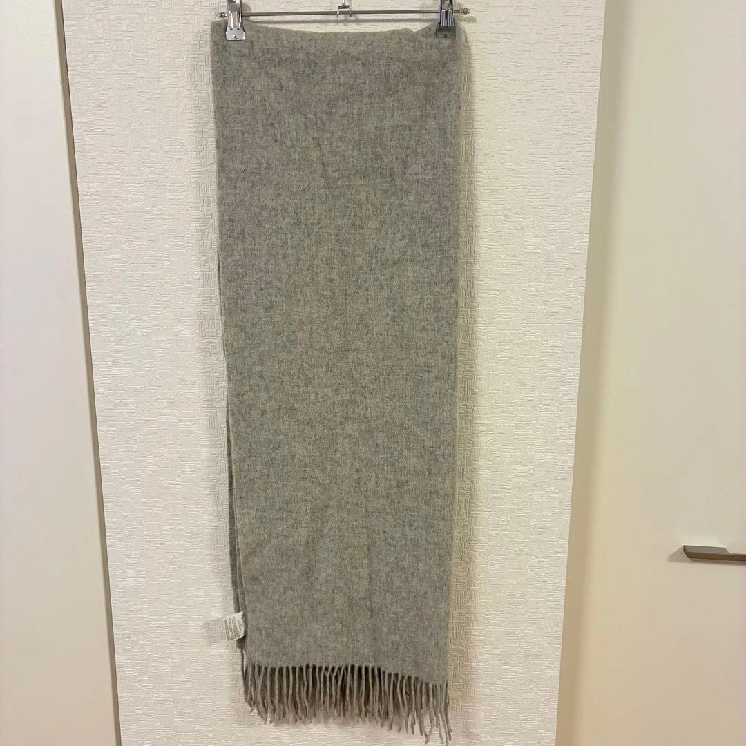 素材 羊毛95% カシミヤ5% カシミヤ混の滑らかな肌触りです。 大判ですので、肩からショールのように羽織ったり膝掛けにも使用できます。 色:グレー サイズ※ 素人採寸です。 縦 約 190cm(フリンジ含めて) 幅 約 64cm ご希望の方はお気軽にご連絡ください。