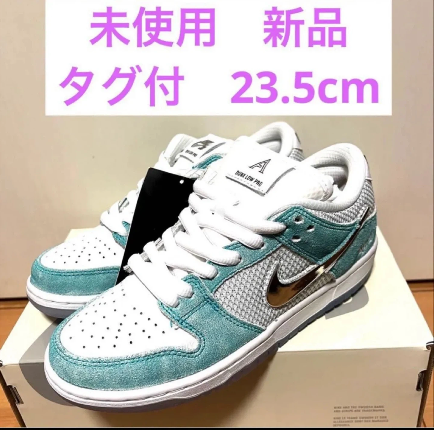 ナイキのスニーカー23.5cmです。 APRIL SKATEBOARDS × Nike SB Dunk Low Pro QS "White and Multi-Color" ホワイトとティールのスエードを使用したNike Dunk Low Pro、シルバーのスウッシュが特徴。 【情報】 ブランド:ナイキ 型番:FD2562 400 サイズ:23.5cm - 色: ホワイト/ティール - 素材: スエード/メッシュ - 特長: シルバーのスウッシュ/Aprilのロゴ 【状態】 未使用品 引っ越しのため、断捨離となります。 コレクションしてたので、乾燥剤とか入れてとても状態良く保管しておりました。 他のサイトでも出品してますので、無くなり次第削除致します。予めご了承くださいませ。 また、どのサイトよりも最安値としてますので、お値下げ不可となります。 カラーホワイト系 汚れ・破れ・臭いなどなし #ナイキ #nike #dunksb #ナイキスニーカー #NIKE #レディーススニーカー #スニーカー