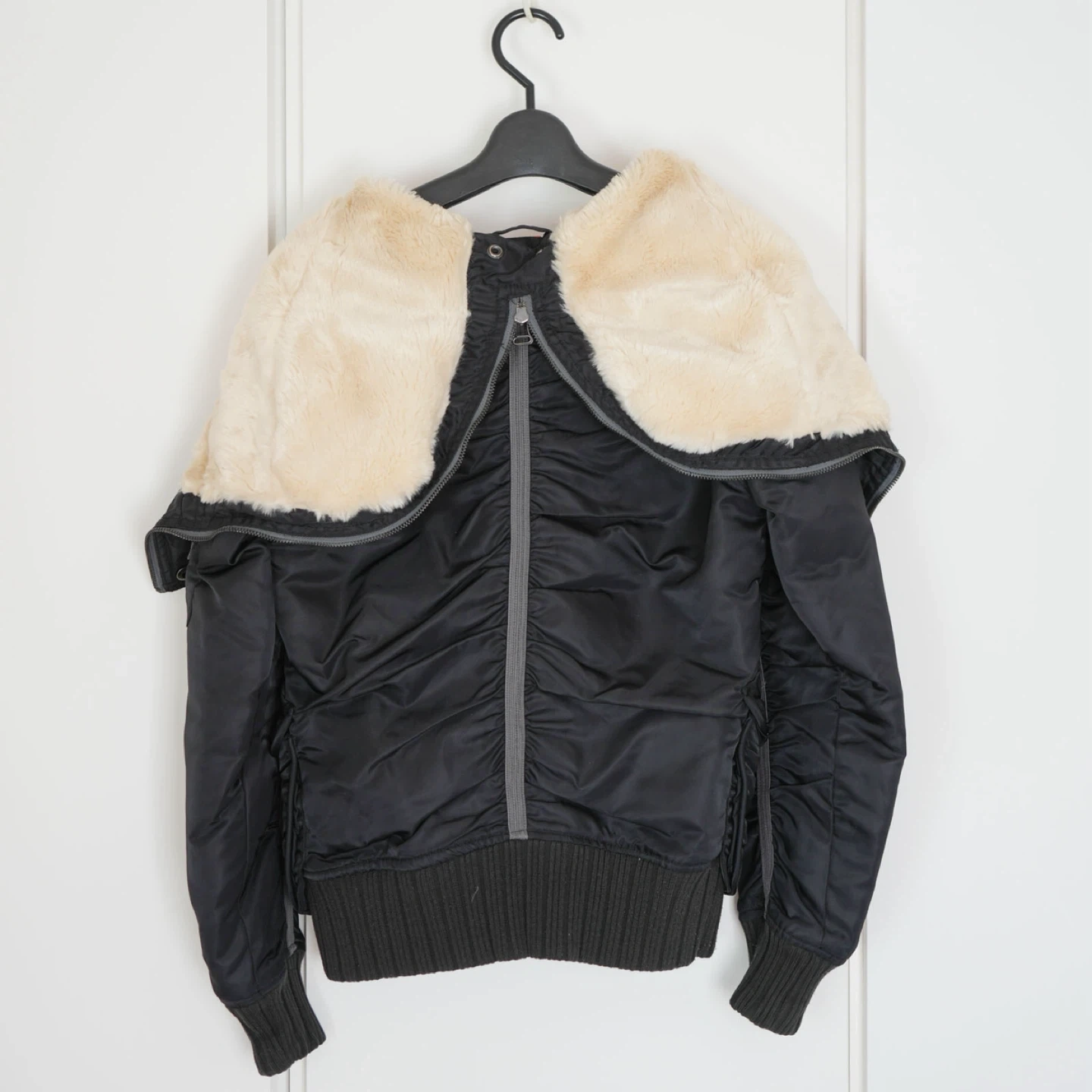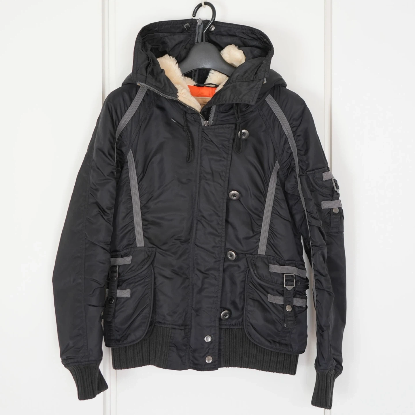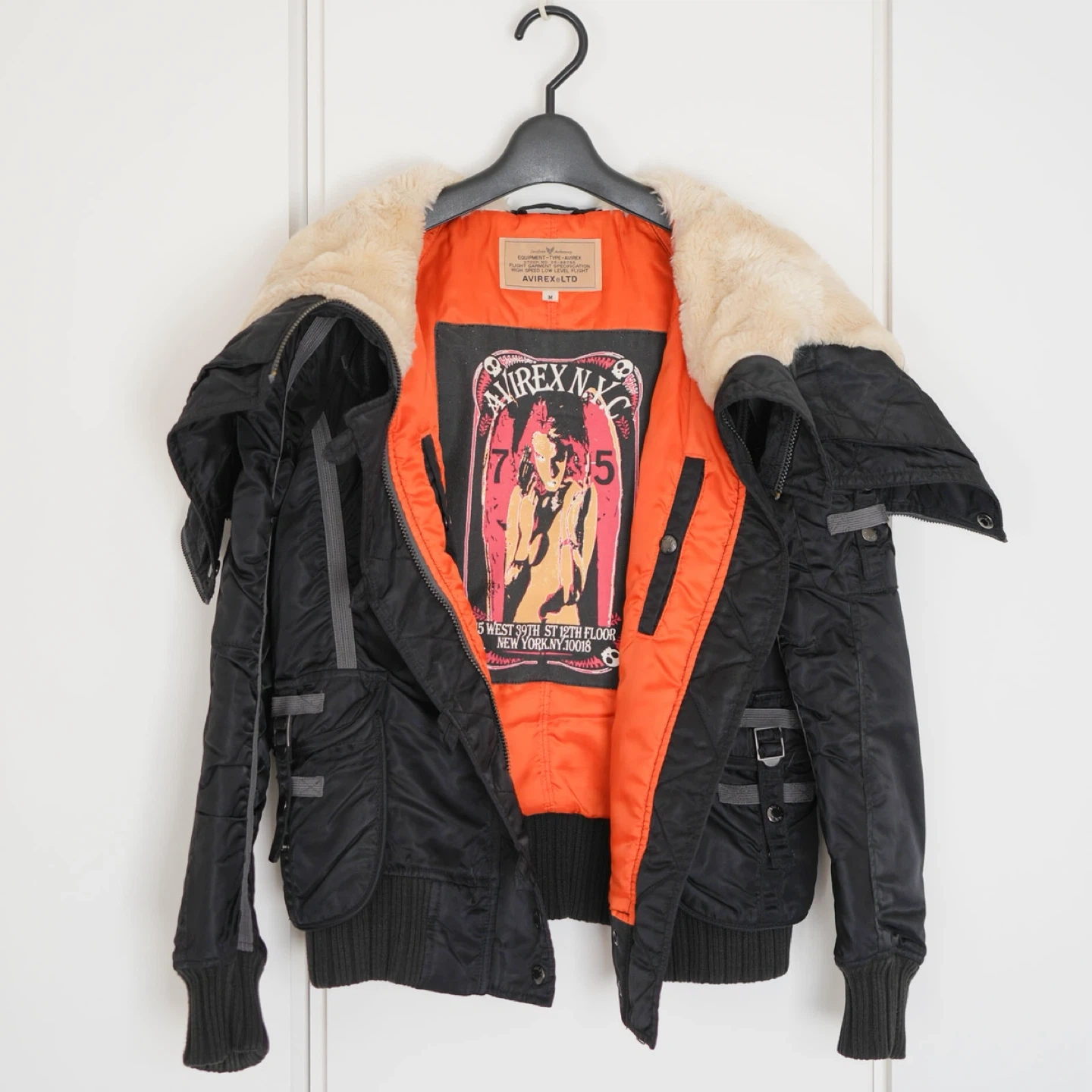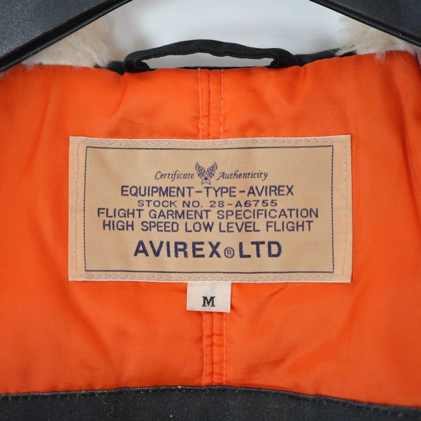 ミリタリーブランドの老舗、AVIREX(アヴィレックス)フライトジャケットです 。 防寒性が高く、真冬〜3月初旬まで着用できます ◾️デザイン・機能の特徴 • ファスナーで中央から割れる仕様になっており、肩に広げてセーラーカラーのようなスタイルでも楽しめます。 • 背面や袖にギャザーが入っており、体にフィットする美しいシルエットを演出。 • 裏地はミリタリーの定番である鮮やかなレスキューオレンジ。 • フード内側は肌触りの良いボア仕様で防寒性もバッチリです。 ◾️状態 目立つ汚れや破れはなく、まだまだ長くご愛用いただけるコンディションです。 ◾️サイズ 表記:M ◾️素材 • 表地:ナイロン 100% • 裏地:ポリエステル 100% • 中綿:ポリエステル 100% • フード裏:アクリル 100% • ファー部分:毛皮(ラクーン) • ※本商品にファーは付属しません ◾️お渡し 平日夜、土日対応可能です。