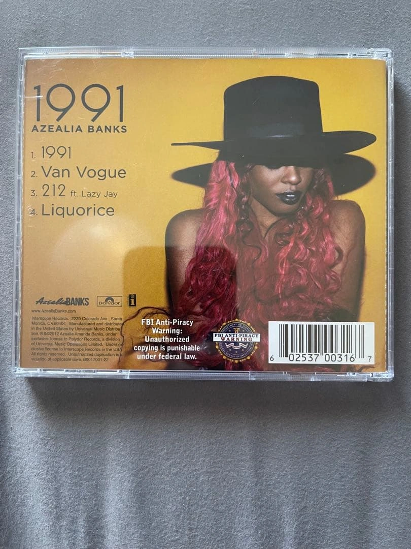 NYハーレム出身Azealia Banksの初EP『1991』です。 強烈なデビューシングル曲『212』を収録。 デビューアルバム前の貴重なEPとなります。 - アーティスト名: Azealia Banks - アルバム名: 1991 (EP) - 収録曲: 1. 1991 2. Van Vogue 3. 212 (feat. Lazy Jay) 4. Liquorice - レーティング: Parental Advisory ご写真を撮った通りに発送します。 ご希望の方はお気軽にご連絡ください。