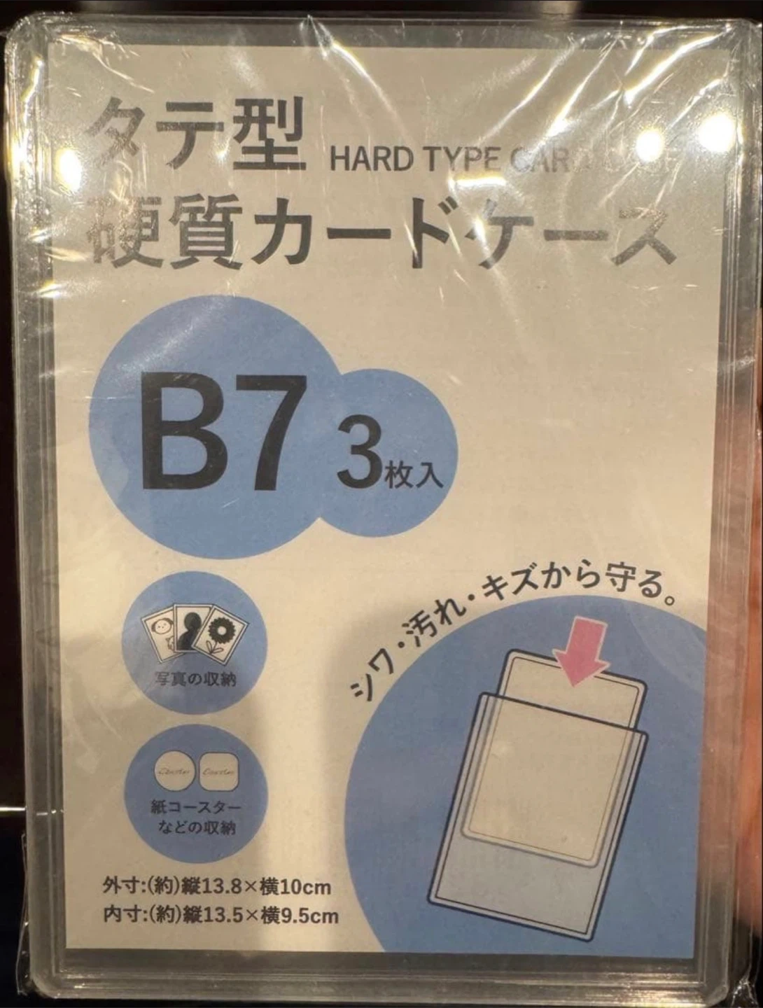 B7サイズのハードタイプカードケース、3枚入りで、汚れやキズからカードを守ります。 - タイプ: ハードタイプ - サイズ: B7 - 枚数: 3枚入 - 外寸: 約13.8×10cm - 内寸: 約13.5×9.5cm ご覧いただきありがとうございます。 購入したもののサイズが合わなかったため出品致します。神経質な方や細かい汚れや傷み具合等が気になる方は店頭の方でご購入くださいm(_ _)m 【ご確認のうえよろしくお願い致します。】 包装等不慣れな点もあるかと存じますが、ご理解とご了承下さい。 全て値下げ不可のなりますm(_ _)m 購入前に商品説明欄の部分とプロフィールの自己紹介文をご確認頂きますようお願い致します。 配送方法を変更したい方は購入前にコメント欄にてお知らせ下さい。 ■ 発送梱包について ・購入頂いたその日に発送致します。 ・発送方法は、ヤマト運輸か日本郵便になります。 細かなサイズ確認や専門的なご質問には対応できません。素人の自宅保管品になりますので、完璧をお求めの方・細部を気にされる方はご購入をお控えください。 購入後のご質問やクレーム対応はできかねます! ■ 送料について ・基本的には送料込で出品していますが1部送料込に出来ないものがございます。予めご了承下さい。 ■ ご購入前に必ずお読みください ・商品の状態説明をよくお読みいただいた上で、ご検討をお願いいたします。 ■ 価格交渉について ・フィギュア以外の商品につきましては、多少のお値下げ交渉に応じます。 ・対面でのお取引はしておりません。 ・ご購入後のキャンセルはご遠慮ください。 ■ 商品について ・商品の不備につきましては、責任を負いかねます。 迅速かつ双方にとって気持ちの良いお取引を心掛けております。購入後のクレームだと判断した方は大変申し訳ないのですがブロックの対象とささせて頂きますので、よろしくお願いしします。 当方は専門的な知識を持ち合わせておりません。現状は写真にてご購入頂けるものが全てでございますので、画像にてご判断頂ける方のみご健闘をお願いしております。