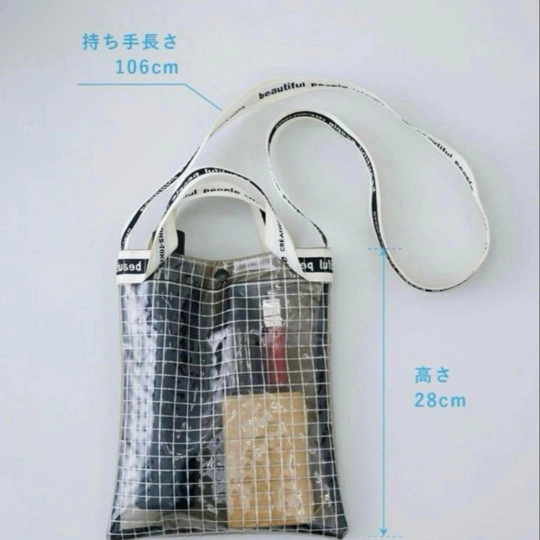 可愛くてお気に入りなのですが、なかなか使う機会が無いので出品致します。 使用回数は少ないですが、長期保管していた為若干の色の変化があるかと思います。 サイズ・着用感は画像をご参照ください。 【beautiful people×STUDIOUS限定商品】 ニットやコートで重くなりがちな秋冬コーデにプラスワン! 秋冬の装いにもマッチするブラックカラーのクリアバッグ。 ■ありそうで無かったブラック系カラー 今までありそうで無かった、モードなクリアブラックが珍しいカラー。 クリアなブラックカラーはシックで上品な仕上がりのため、幅広い年代の方にお持ちいただきやすいカラーです。 ロゴが入ったジャガードテープは、あえて反転させて取り付け、カラーリングと遊び心をプラス。 他にはないインパクトさがありながらも使い勝手のよいカラーリングは、大活躍間違い無しです。 ■バッグの新定番、サコッシュ 近年大人気のサコッシュタイプが、beautiful peopleのビニールバッグシリーズでも登場。 サイズ感も絶妙で、長財布や小物がしっかり入ります。 ワンマイルのお出かけや旅先でのサブバッグ、さまざまなシーンのレジャーアイテムとして間違いなく活躍するアイテムです。 カラー···ブラック系 素材···ナイロン