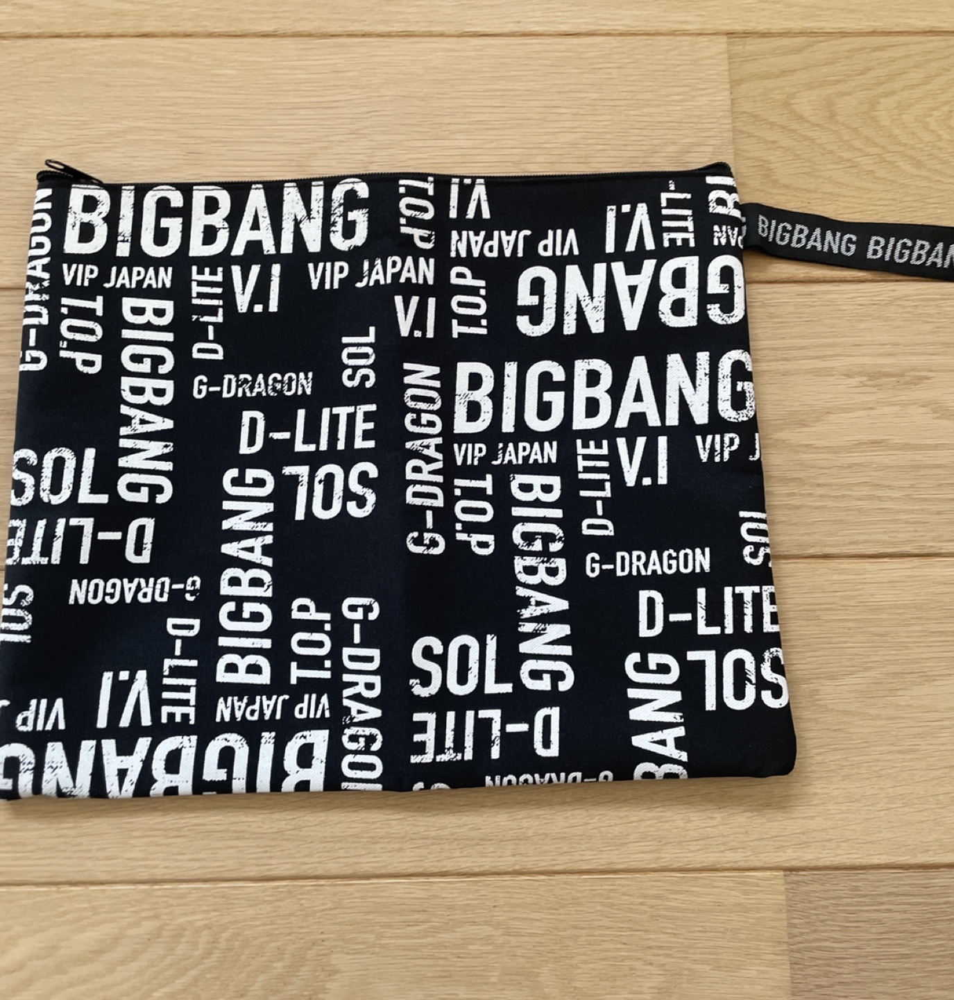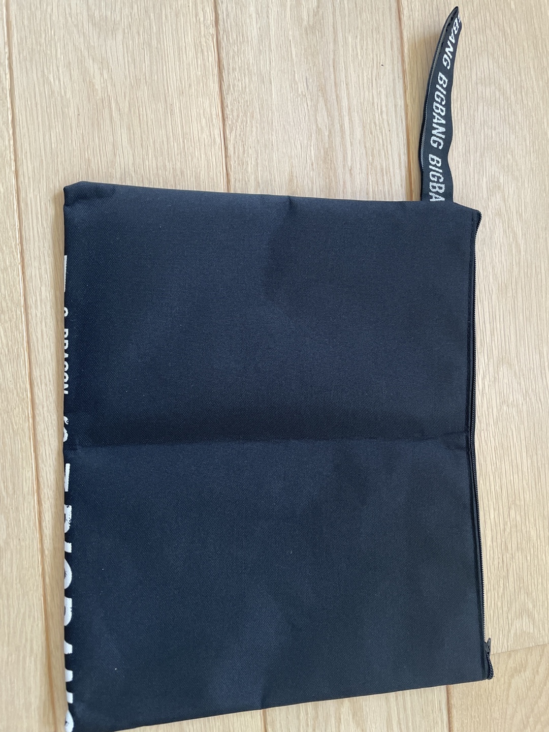 BIGBANGのファングッズです。 横35.5cm 縦29.55cm 前には文字がプリントされ、後ろは無地です。 内側にポケットはありません。