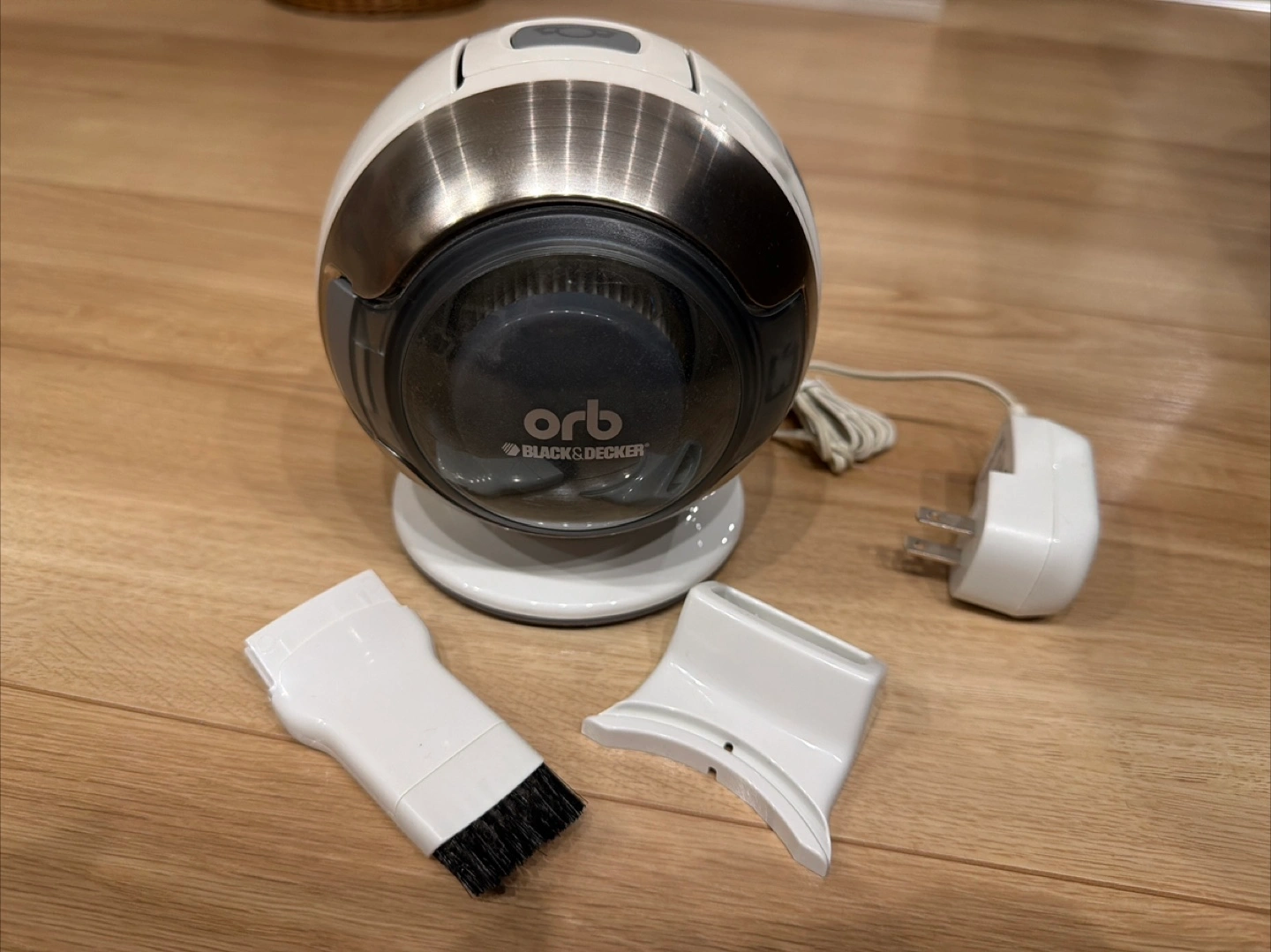 【情報】 ブランド:BLACK+DECKER 種類:ハンディクリーナー モデル:orb 【付属品】 充電器、ブラシ 箱はありません。 丸くて可愛いです。 ボタンを押すと吸い込み口と持ち手が出てきます。 平日の19時〜22時は基本的にお取引可能な時間帯です。週末は都度ご相談ください。 受け渡し場所は、村岡東周辺で相談させて欲しいです。