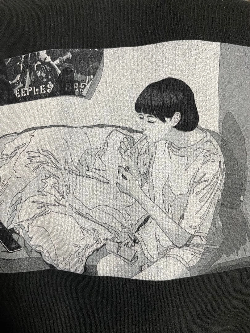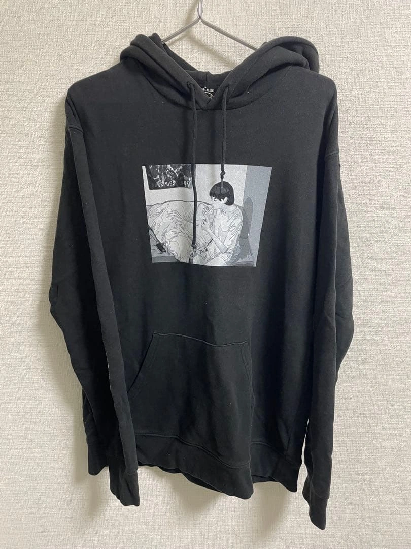 フロントにタバコ・女の子グラフィックプリントの黒いフード付きパーカーです。 - 色: 黒 - サイズ: L 着丈65cm 身幅56cm - デザイン: フロントにグラフィックプリント - ロゴ: BLACKBRAINが袖にプリント - スタイル: フード付きパーカー - ポケット: フロントポケット付き ご覧いただきありがとうございます。