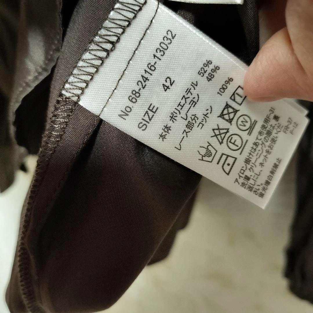 bon sens ブラウン レース付き 花柄レースVネック 長袖トップス 42