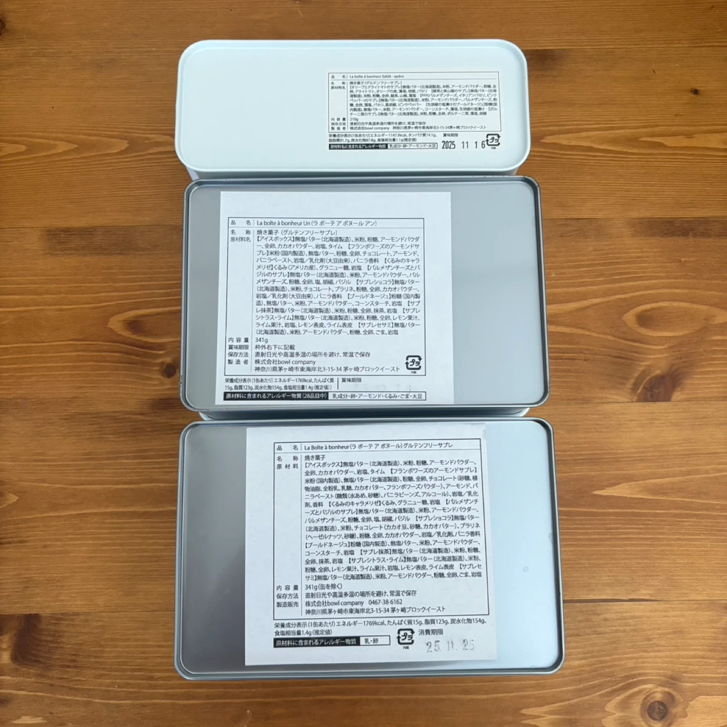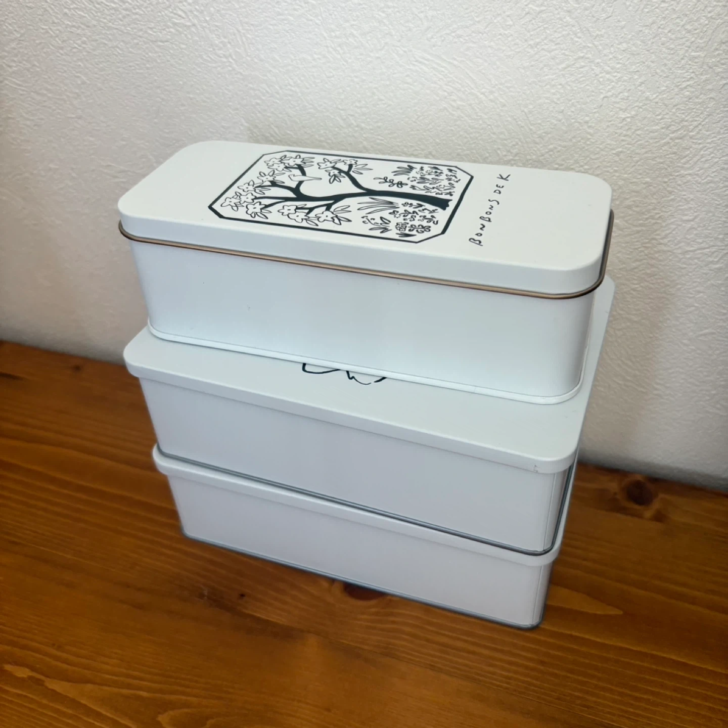 【サイズ】 ・縦15.8cm横10.8cm高さ4.5cm ・縦16.2cm横6.6cm高さ5.0cm 【カラー】 ホワイト 【詳細】 BONBONS DE K 2021年7月、湘南・茅ヶ崎にオープンしたグルテンフリーの焼き菓子専門店です。 こちらのおしゃれな空き缶のセットです◎ ・”La boîte à bonheur グルテンフリークッキー缶 Un ・La boîte à bonheur apéro 【状態】 中身を食べ終わって軽くゆすぎ、干しておいたものです。 自宅保管のため、神経質な方はご遠慮下さい。気になる点は購入前にコメント下さい。 【その他】 気になりましたらお気軽にコメント下さいませ(^^)