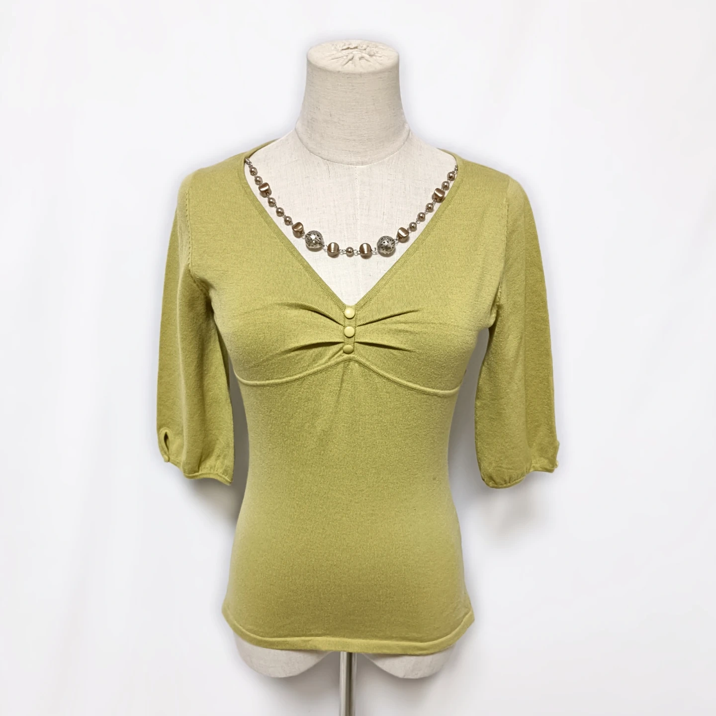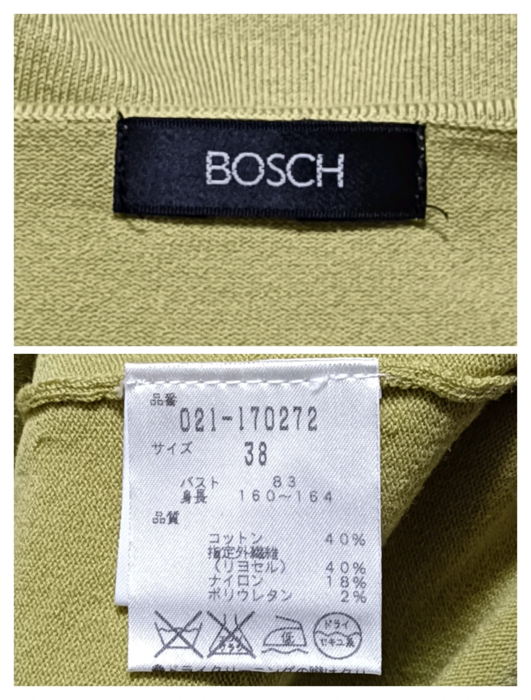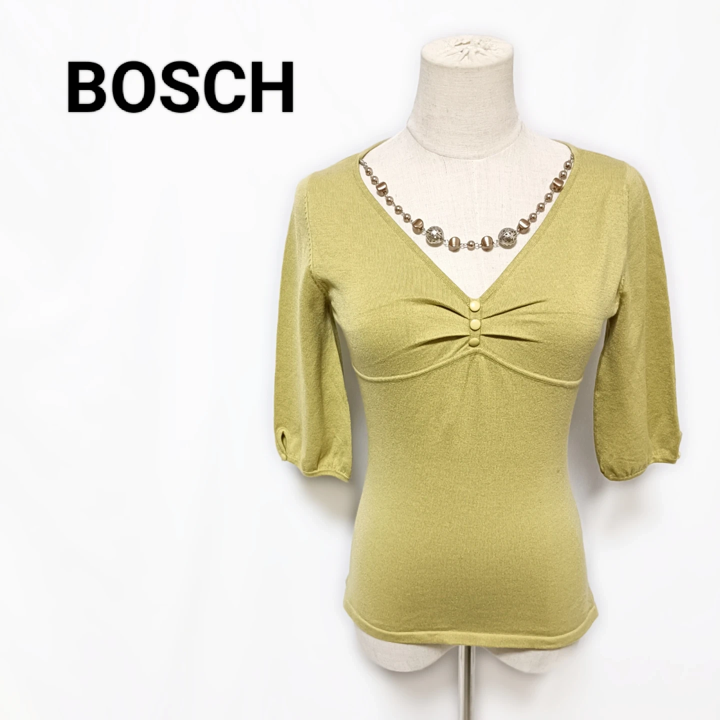 ご覧いただきありがとうございます! ボッシュのきれいめカジュアルなVネックニットです。 肌触りの良いリヨセル混の素材で、**伸縮性(ストレッチ)**に優れており、着心地抜群です。 オフィスカジュアル、通勤、デート、デイリーユースなど、幅広いシーンで活躍します。ジャケットのインナーとしても映えるきれいなカラーです。 □商品名□ 【BOSCH】 美品 ライムグリーン Vネック ギャザー ニット M 38 七分袖 □ブランド□ BOSCH ボッシュ □表記サイズ□ 38(Mサイズ相当) □実寸サイズ(cm) □ 着丈:51 肩幅:36 身幅:41 袖丈:36 ※実寸につきまして多少の誤差はご了承ください。 ※表記サイズだけではなく実寸のサイズをご確認ください。 □カラー□ ライムグリーン(鮮やかな黄緑色) □素材□ コットン 40% 指定外繊維 (リヨセル) 40% ナイロン 18% ポリウレタン 2% □コンディション□ 目立った汚れやダメージなど特にございません。 ※汚れはできる限り写真にて掲載しております。まずは画像をご確認ください。 どうぞよろ しくお願い致します。 □商品管理番号□ BB1-R-5607