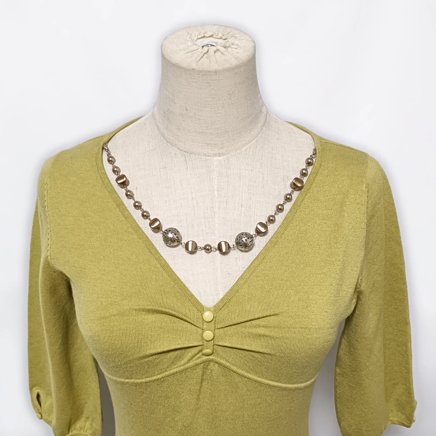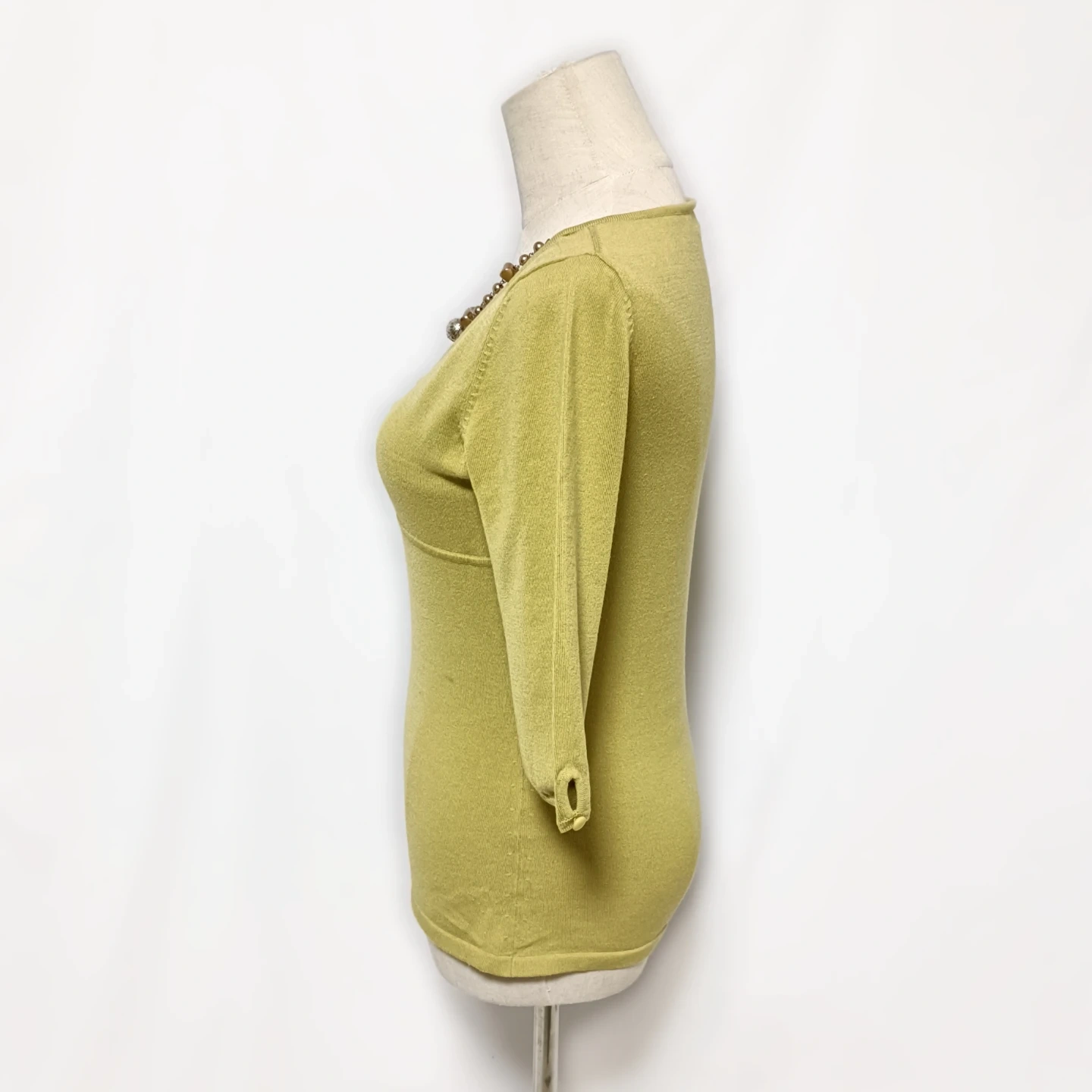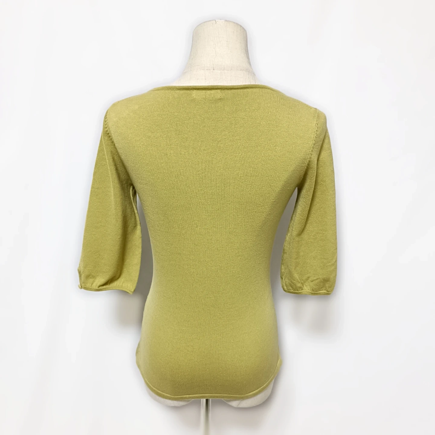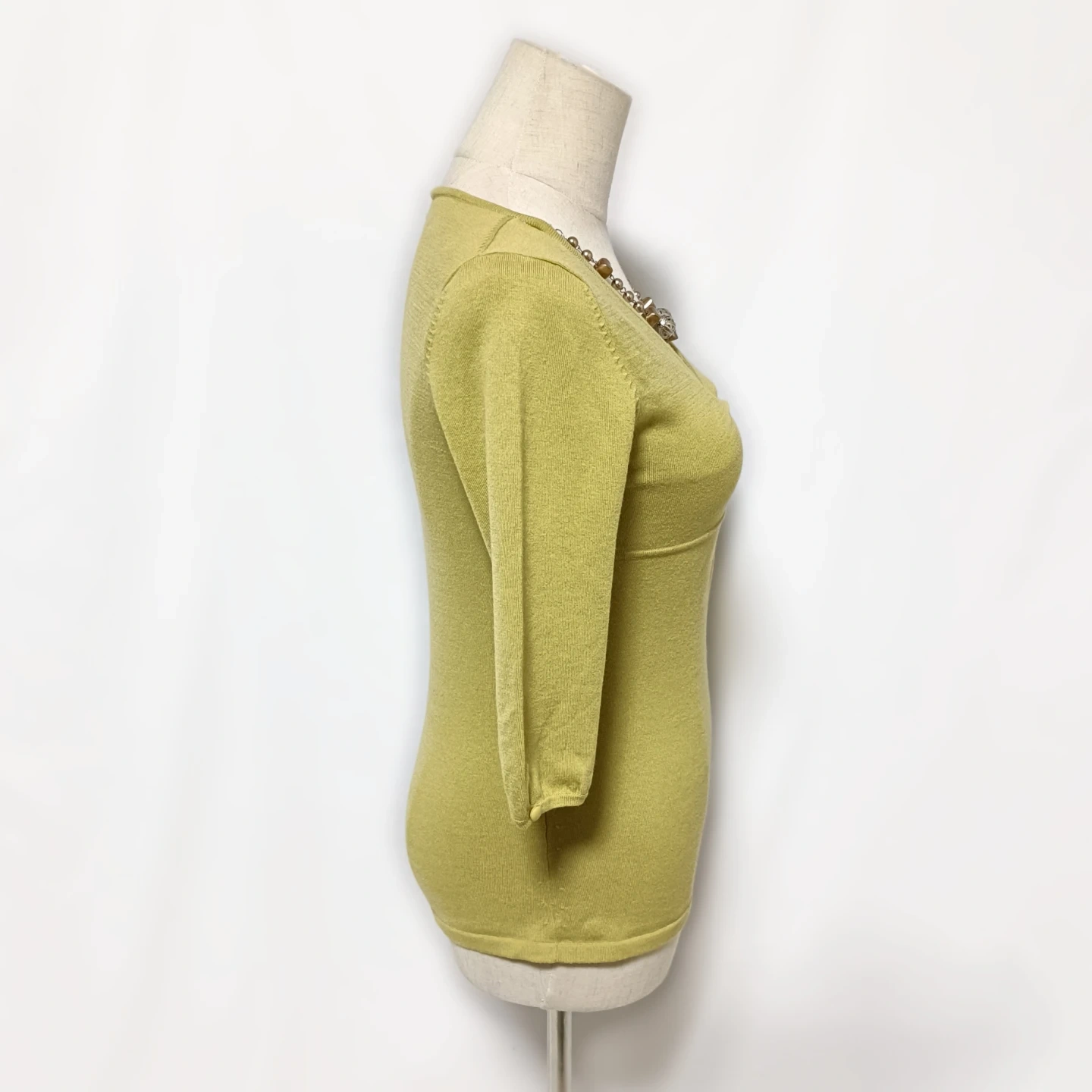 ご覧いただきありがとうございます! ボッシュのきれいめカジュアルなVネックニットです。 肌触りの良いリヨセル混の素材で、**伸縮性(ストレッチ)**に優れており、着心地抜群です。 オフィスカジュアル、通勤、デート、デイリーユースなど、幅広いシーンで活躍します。ジャケットのインナーとしても映えるきれいなカラーです。 □商品名□ 【BOSCH】 美品 ライムグリーン Vネック ギャザー ニット M 38 七分袖 □ブランド□ BOSCH ボッシュ □表記サイズ□ 38(Mサイズ相当) □実寸サイズ(cm) □ 着丈:51 肩幅:36 身幅:41 袖丈:36 ※実寸につきまして多少の誤差はご了承ください。 ※表記サイズだけではなく実寸のサイズをご確認ください。 □カラー□ ライムグリーン(鮮やかな黄緑色) □素材□ コットン 40% 指定外繊維 (リヨセル) 40% ナイロン 18% ポリウレタン 2% □コンディション□ 目立った汚れやダメージなど特にございません。 ※汚れはできる限り写真にて掲載しております。まずは画像をご確認ください。 どうぞよろ しくお願い致します。 □商品管理番号□ BB1-R-5607