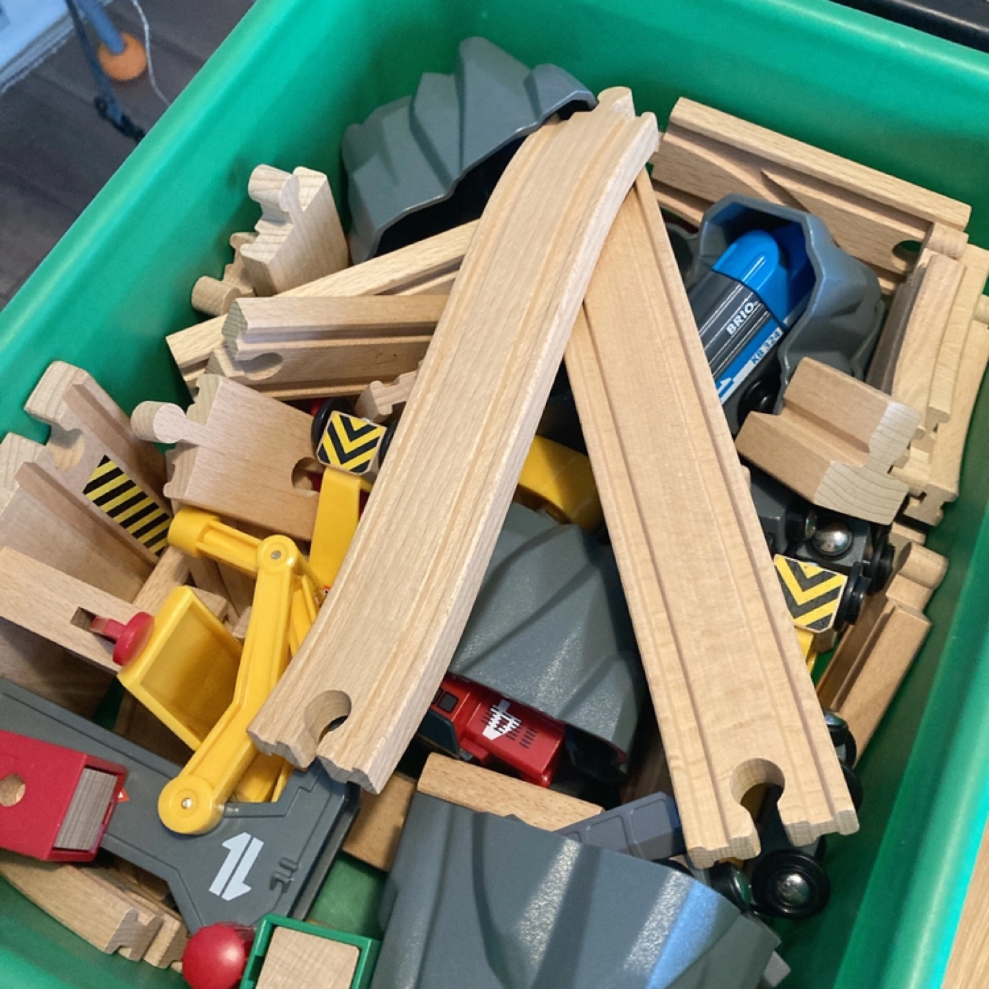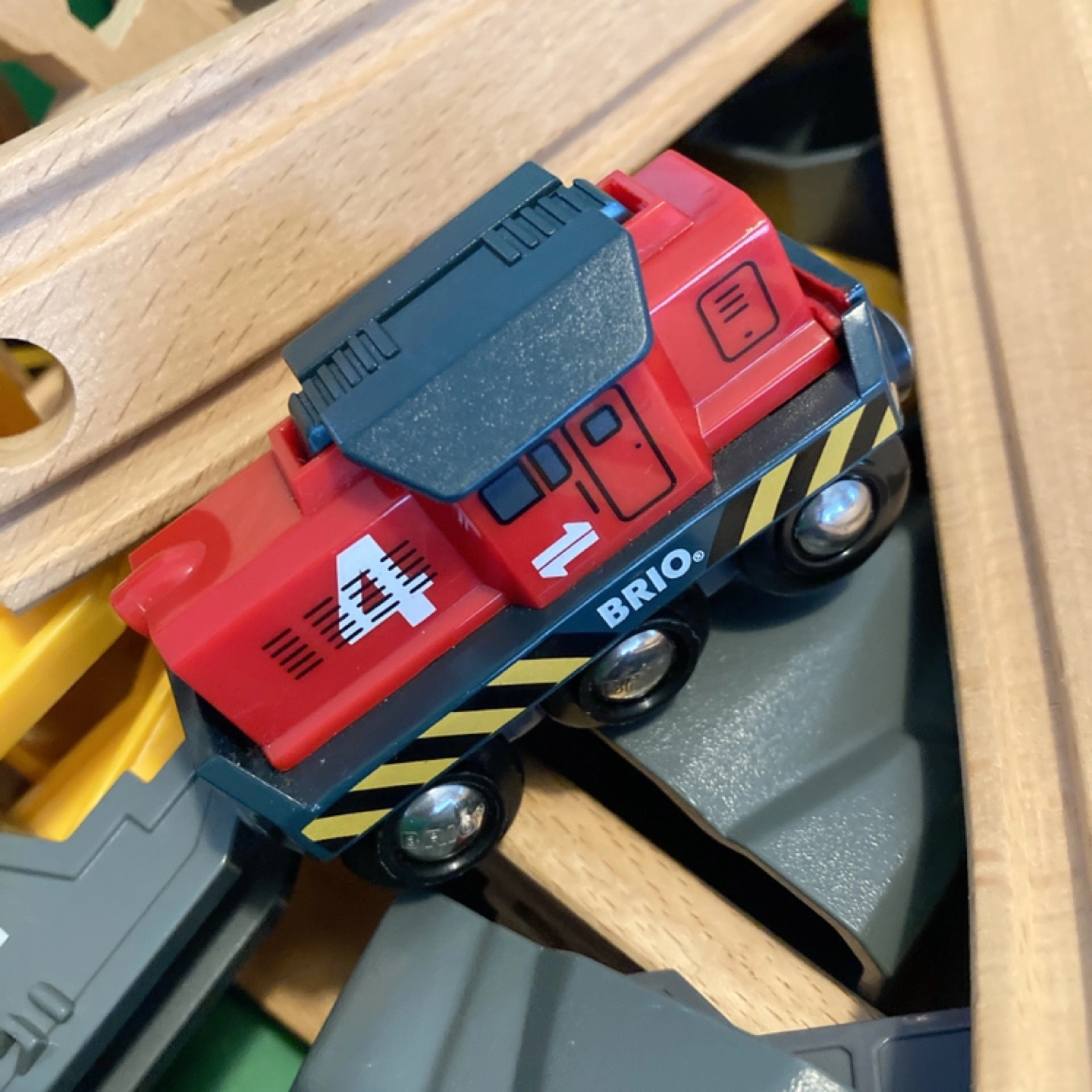BRIO(ブリオ)の Cargo Railway Deluxe Set「カーゴレールデラックスセット」です。 パーツは全て揃っています。 木製レールの一部にヒビやキズがあるものがあります(写真5、6枚目にてご確認ください)。 赤い車両は本来電池を入れて走行するのですが、 電池漏れにより動かなくなってしまっております。 そのため、お安くしております。 上記ご理解頂けた方のみよろしくお願いいたしま す。