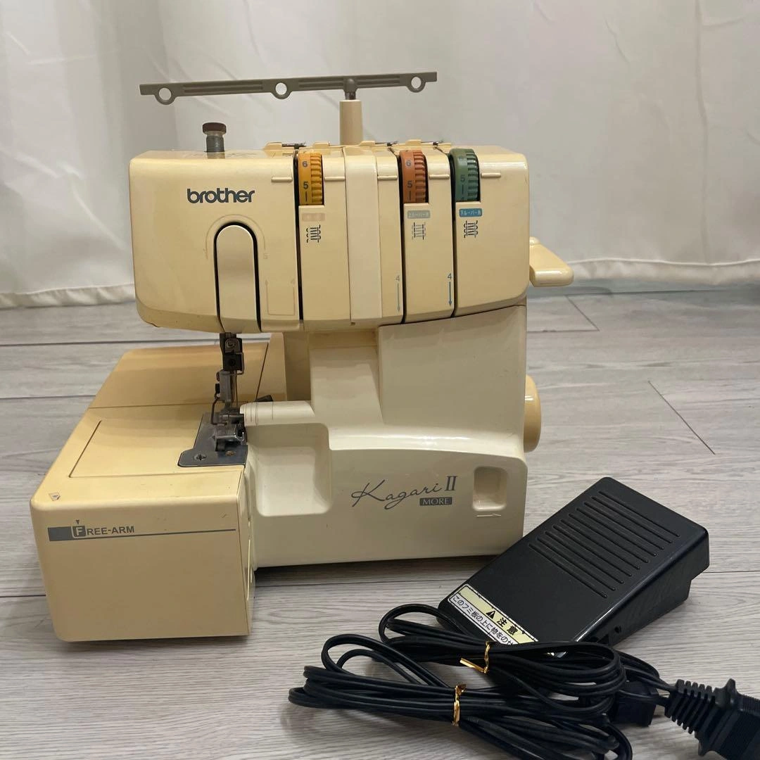 brotherのkagari IIロックミシン、フットペダル付きです。 - ブランド: brother - モデル名:kagari II - 調整ダイヤルの数: 3 - 付属品: フットペダル 長期保管品となります。 通電、稼働確認済みですが試し縫い等の確認はおこなっておりません。 プラスチックに割れ(写真6) 接着剤で修復してある箇所(写真2)あり。 全体的に日焼け等ございます。 表面を拭き取った程度で中の糸くず等はクリーニングしていないため多少残っております。 中古品ですのでご理解いただける方のみお願いします。 ぜひこの機会にご検討ください。 ご覧いただきありがとうございます。