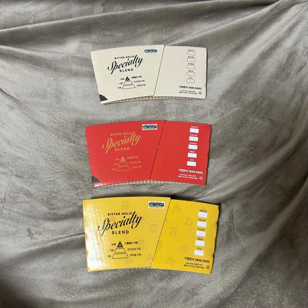 韓国のコーヒーチェーン店のコンポーズコーヒーで、ドリンクをテイクアウトする際に貰えるカップホルダーです。期間限定のパッケージデザインです。 3点です! 海外製品のため初期擦れ、細かな傷、印刷粗等ある場合がございます。ご理解、ご了承いただける方のみご購入お願い致します。 ご希望の方はお気軽にご連絡ください。