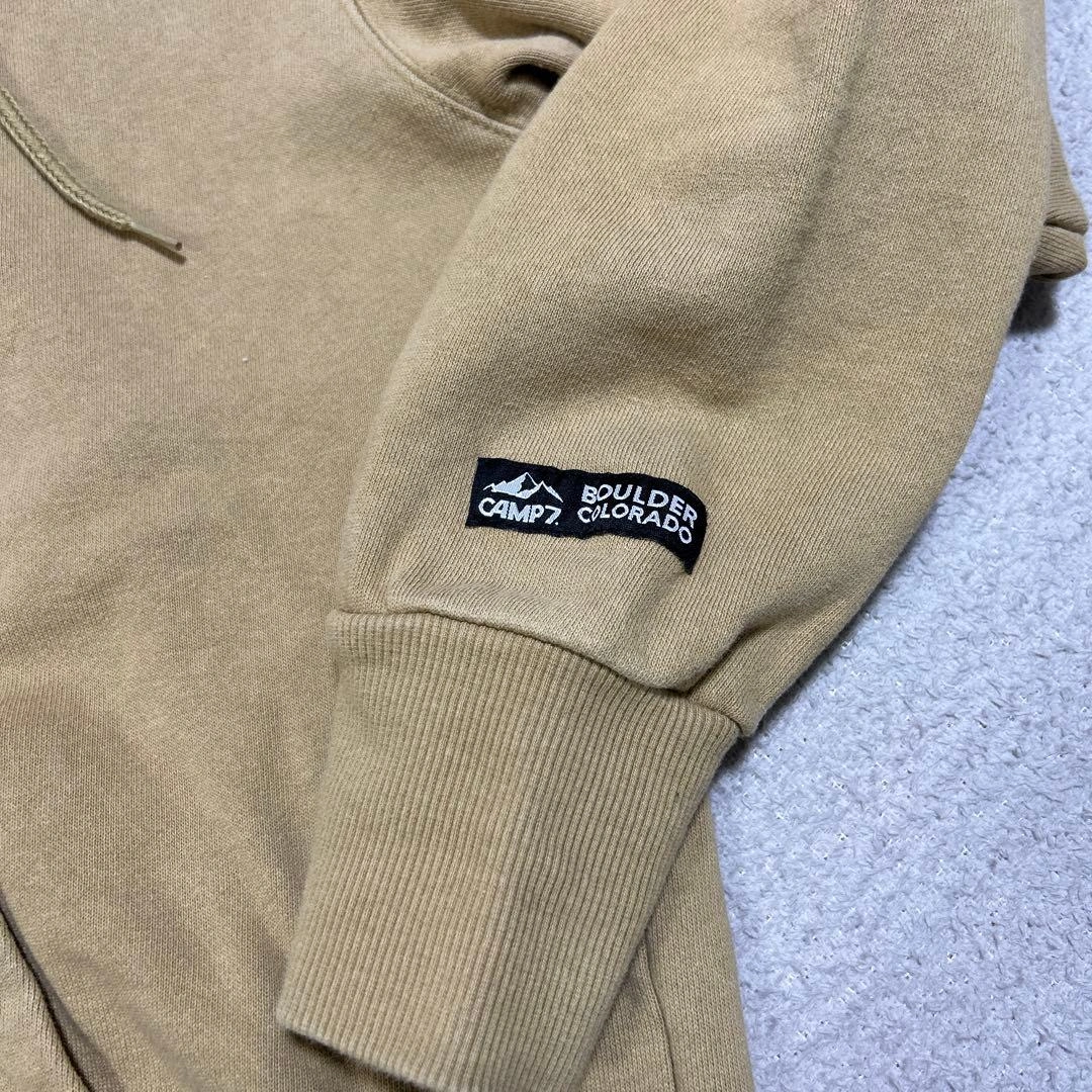 ベージュのCAMP7パーカーです。フロントとバックにロゴプリントがあります。 ブランド: CAMP7 カラー: ベージュ デザイン: フロントにロゴプリント 特徴: 袖にロゴタグあり デザイン: バックにロゴプリント 肩幅 平置き53センチ 着丈 平置き62センチ 数回着用しましたが綺麗です。ご希望の方はお気軽にご連絡ください。