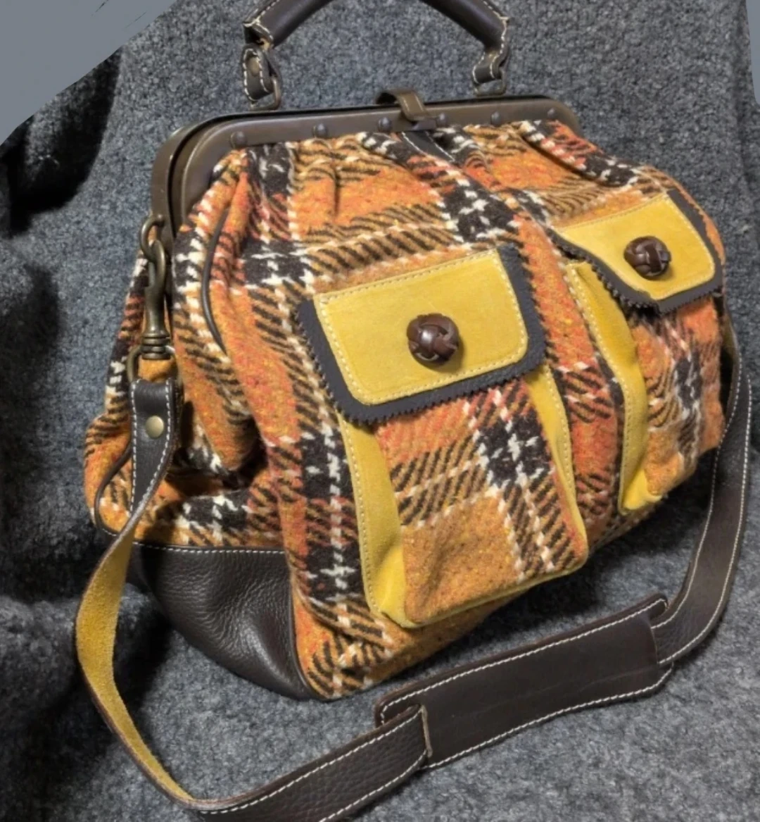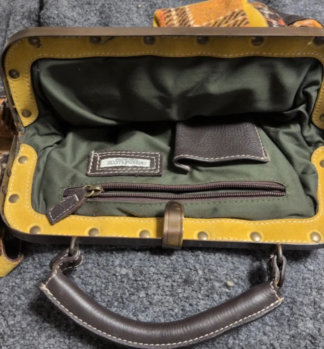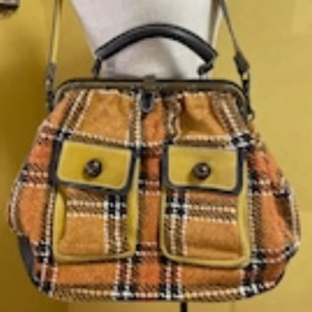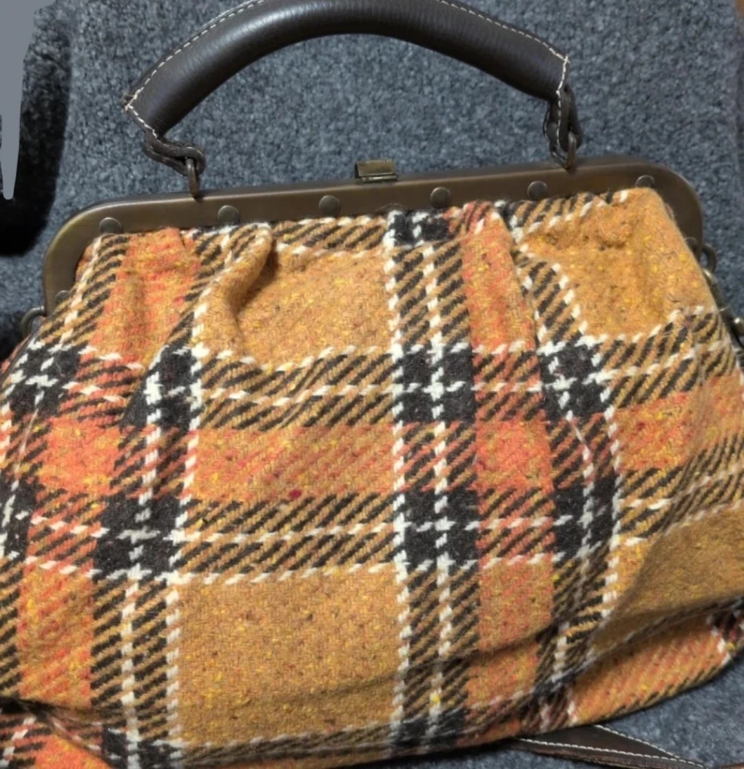 Caterina Lucchiカテリーナルッキ レトロ可愛い2way激レアバッグです。ショルダーハンドバッグでがま口が可愛い。チェック柄が秋冬らしくて可愛い。定価は高かった記憶があります。 使用してたので少しバッグ底に傷がありますが、他は大切に使用してたのでキレイだと思います。 ヴィンテージものなので、金具の匂いがします。 ・オレンジと茶色のチェック柄 ・レザーの持ち手とショルダー ・内側にファスナー付きポケット 中古品であることをご了承ください。