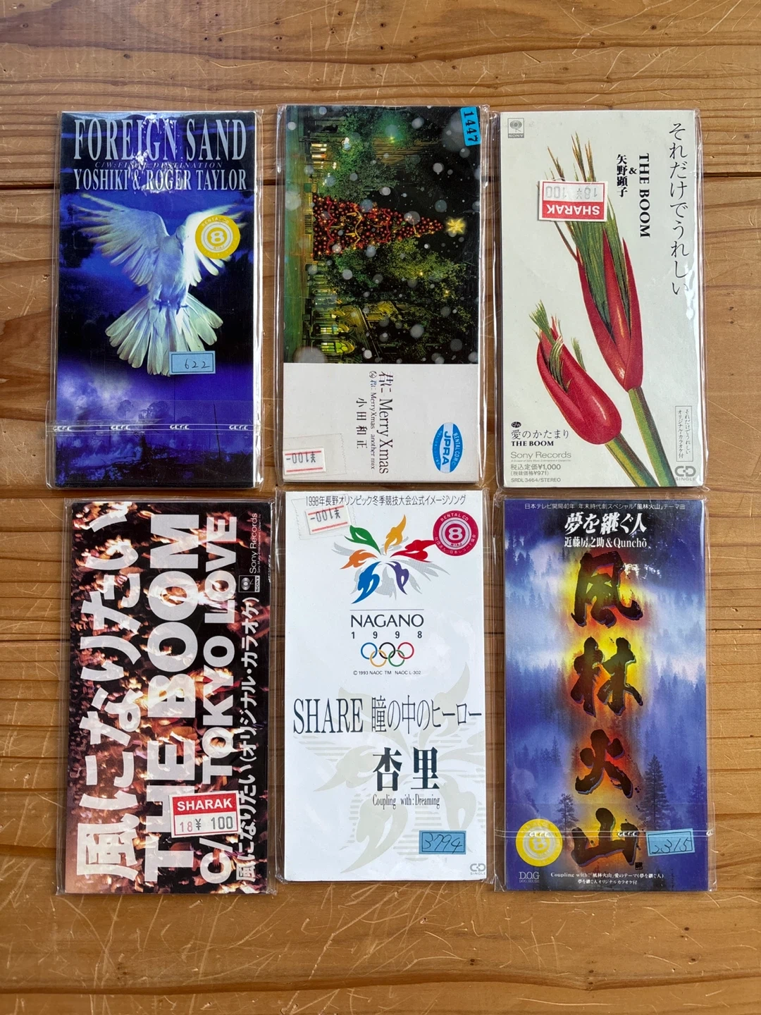 CDシングルまとめ売りです。 ・FOREIGN SAND YOSHIKI & ROGER TAYLOR ・君にMerry Xmas 小田和正 ・それだけでうれしい THE BOOM 矢野顕子 ・風になりたい THE BOOM ・SHARE 瞳の中のヒーロー 杏里 ・夢を継ぐ人 近藤房之助&Quncho 中古品であることご了承ください。