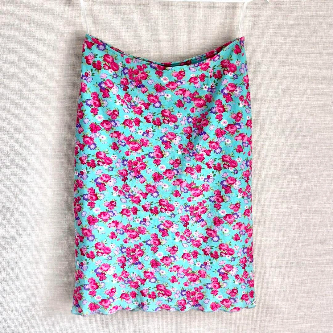 エメラルドグリーンの生地に花柄がとっても目を引く膝丈スカートです♪ 裏地に点の汚れ(最後の写真をご確認ください)と、タグに名前が記載されておりますが、他、特に目立つ汚れやダメージはございません。 【サイズ】 M(フリーサイズ) ウエスト68cm 総丈55cm ヒップ86cm 【素材】 ポリエステル100% 他にも断捨離で色々出品しております。 当方、ダンスをするので、ダンス関連の発表会やパーティー等で1回や数回着用のみの衣類も出品しております。 宜しければ、ご覧下さい。ご希望の方はお気軽にご連絡ください。