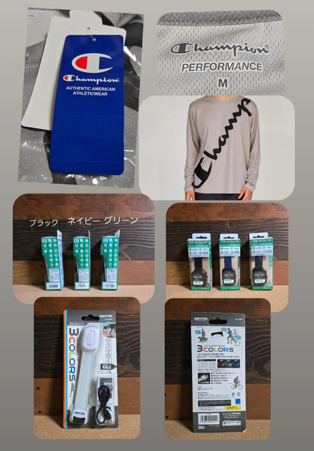 ご覧いただきありがとうございます ★誠に申し訳ありません価格の相談は出来ません ★画像②③④ champion ODORLESS ロンT VAPOR 速乾 ROTECT UVカット 品番 C3 - AS402 Mサイズ 素材 ポリエステル 100% チェスト(胸部) 92cm 身長 170cm 販売価格 ¥4.290 - ★画像⑤⑥⑦ サン・フレイム スマートウォッチ ※it's 9.0以降 ※Android .4以降 無料アプリ『Da Fit』連携可能 App Store Google Play よりダウンロード 『ブラック』『ネイビー』『グリーン』からお選び下さい ※実際にお会いした時に三つの中からお選びして下さい ★画像 ⑦ 実店舗での販売価格です ★画像⑧⑨⑩ GENTOS 充電式LEDセーフティバンド 品番 SL - AOIR 防滴 IPX4 ※赤、緑、青に点灯、点滅の2モード ★画像⑧ 外箱の一部にめくれがあります ★受け渡しは、都営地下鉄新宿線の東大島駅(大島口)の改札内で大丈夫です ご近所の方は駅周辺でお願いします 宜しくお願い致します