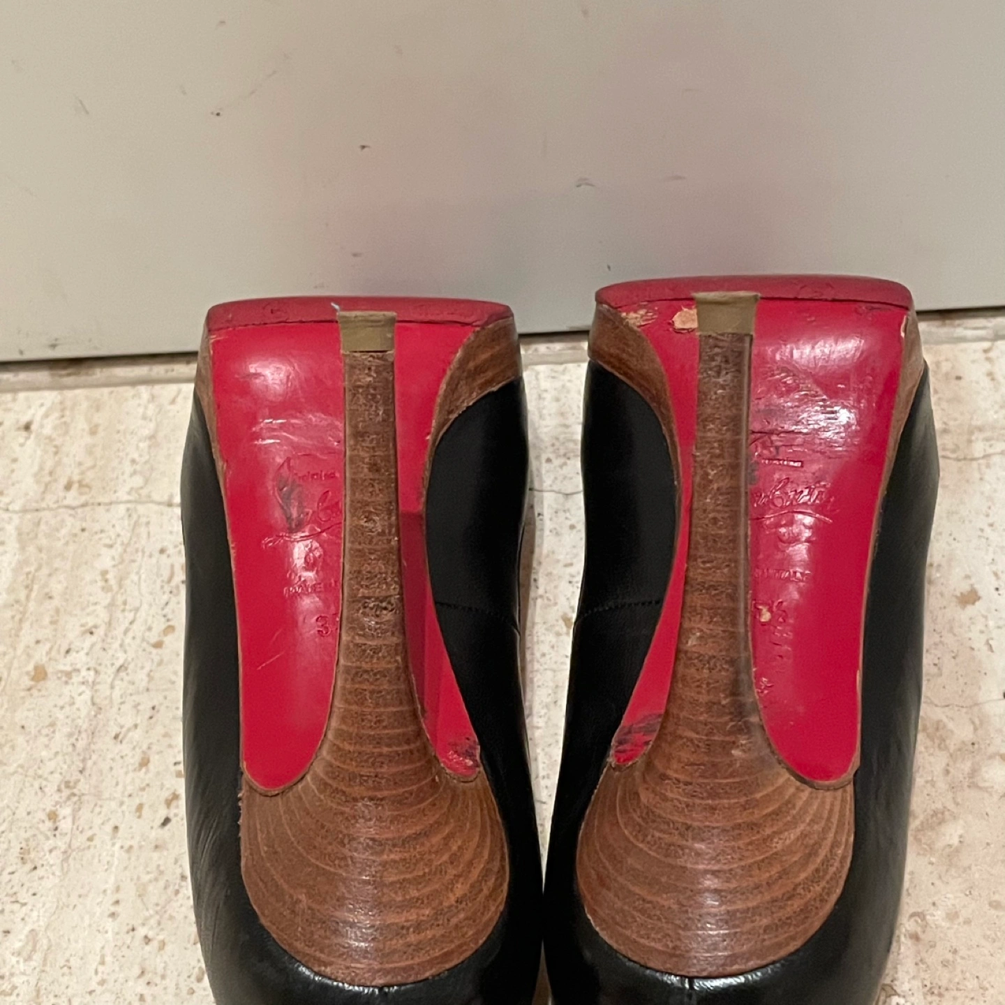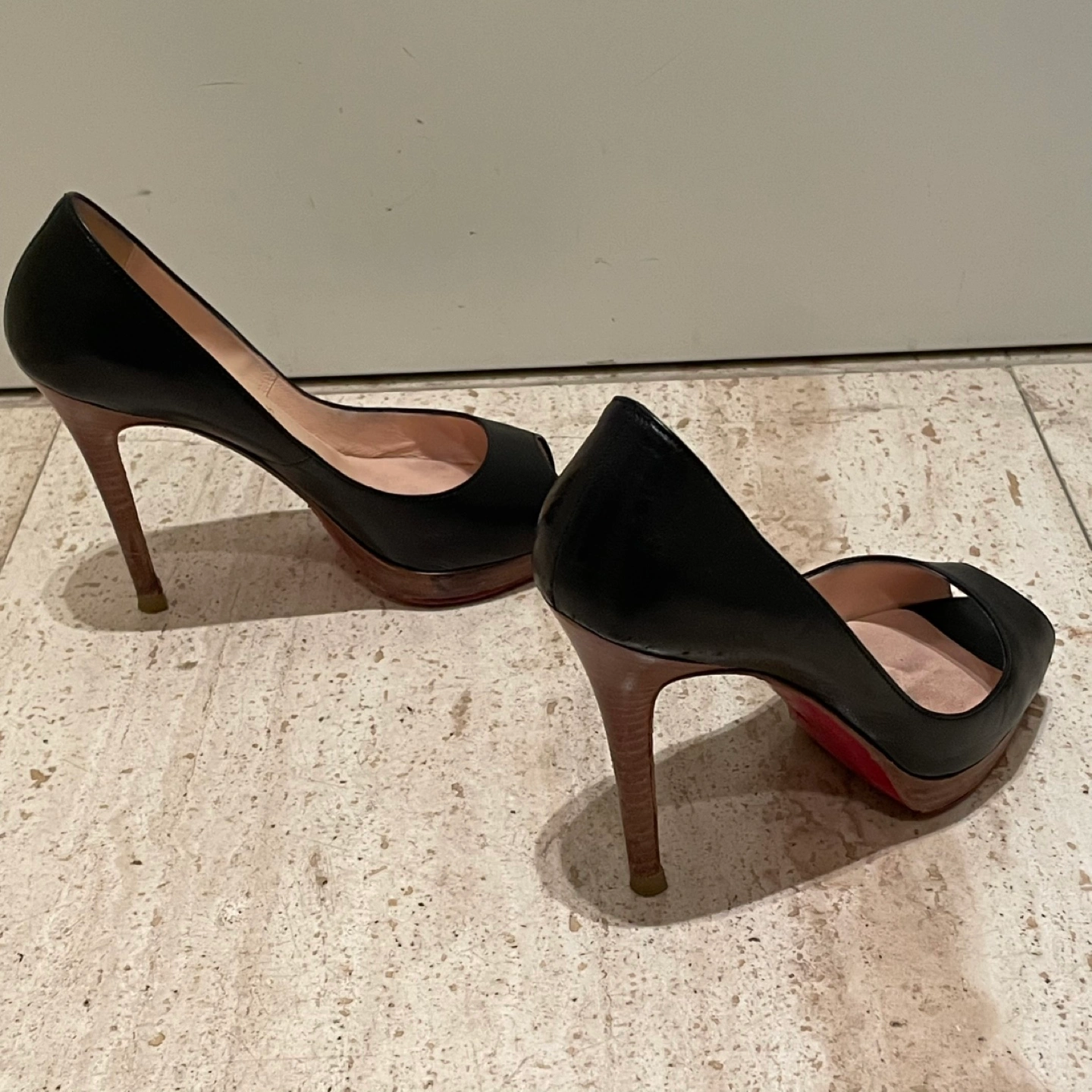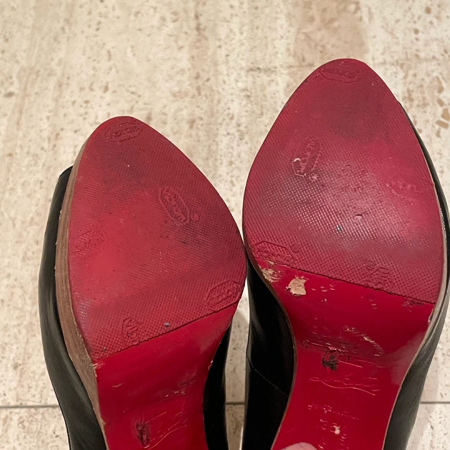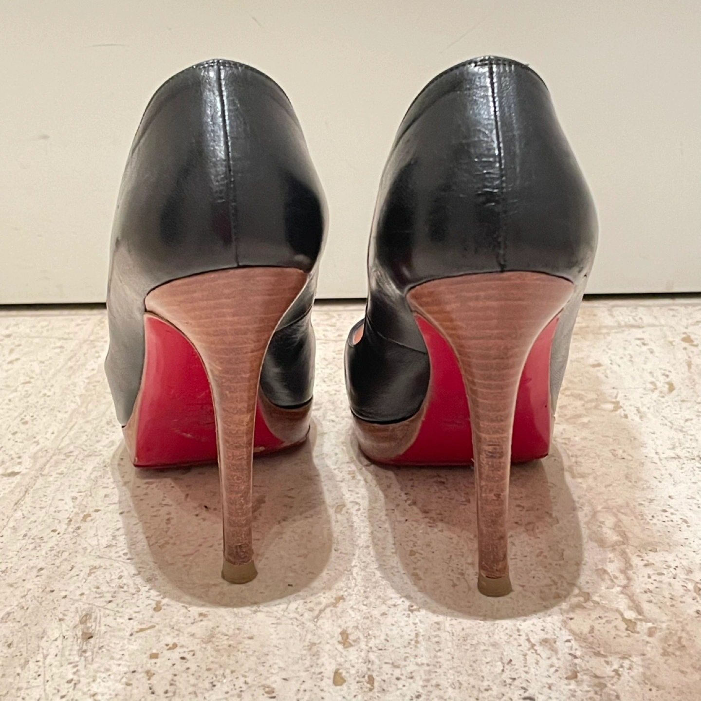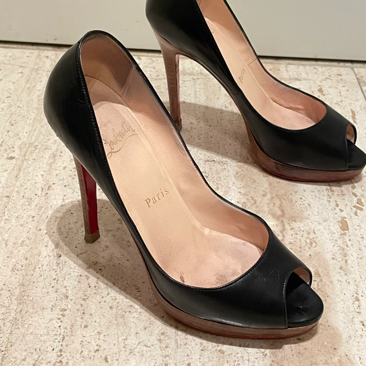 Christian Louboutin クリスチャンルブタン オープントゥパンプス ハイヒール ヒール11cm プラットフォーム 35.5 箱 保存袋あり 裏側などにスレ、汚れあり ソール裏張り 多少の使用感はありますが比較的綺麗でまだまだご使用いただけます 写真にて状態を確認してください 特に目立つキズや汚れはございませんが、 ユーズド品であることをご理解お願いいたします。 洗練されたデザインのクリスチャン・ルブタンのブラックオープントゥハイヒール。 - ブランド: Christian Louboutin - 色: ブラック - スタイル: オープントゥ - ヒールの高さ: 高ヒール - 製造国: フランス