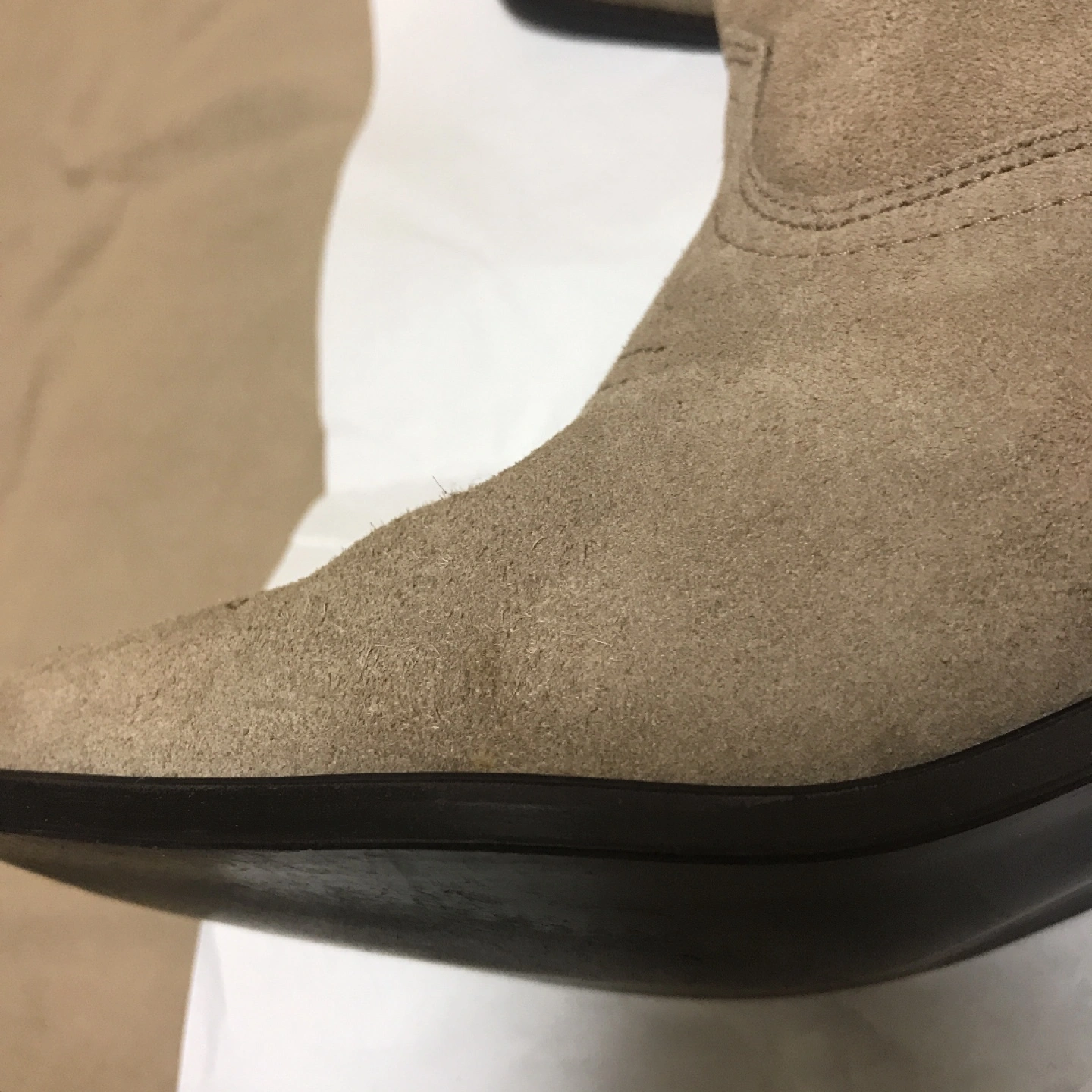 ベージュカラーのスウェードショートブーツです。 4枚目より明るい色味です。 CIAOPANICで購入。 ショートタイプなので、色々なボトムと合わせやすいと思います☺︎ 2回着用。 履いた物なので、細かな傷、汚れ、擦れなどあり。 ★サイズ 36 ★ビールの高さ 5センチ ※画像の商品は光の照射や角度、お使いのモニター環境により、実物と色味が異なる場合がございます