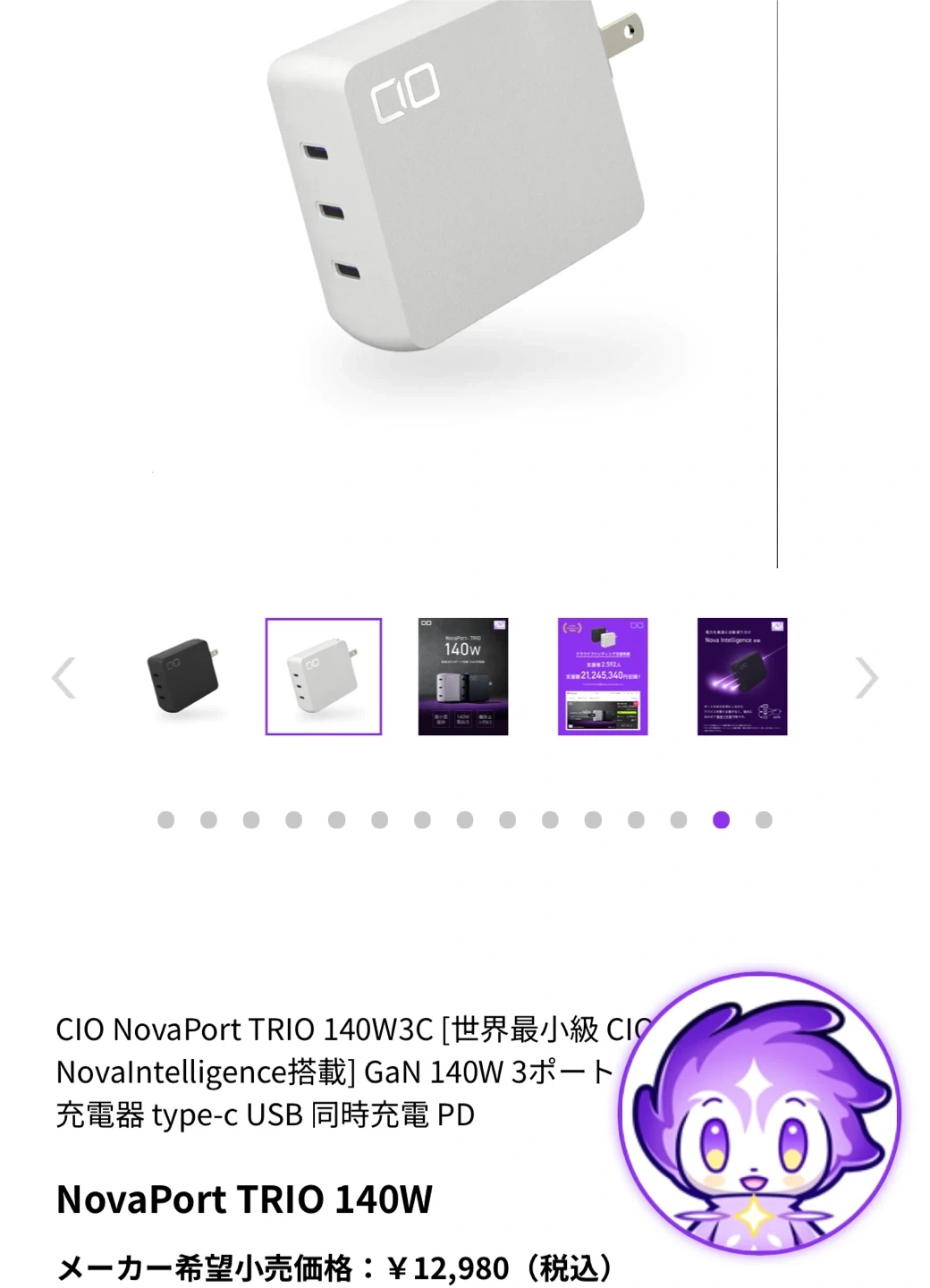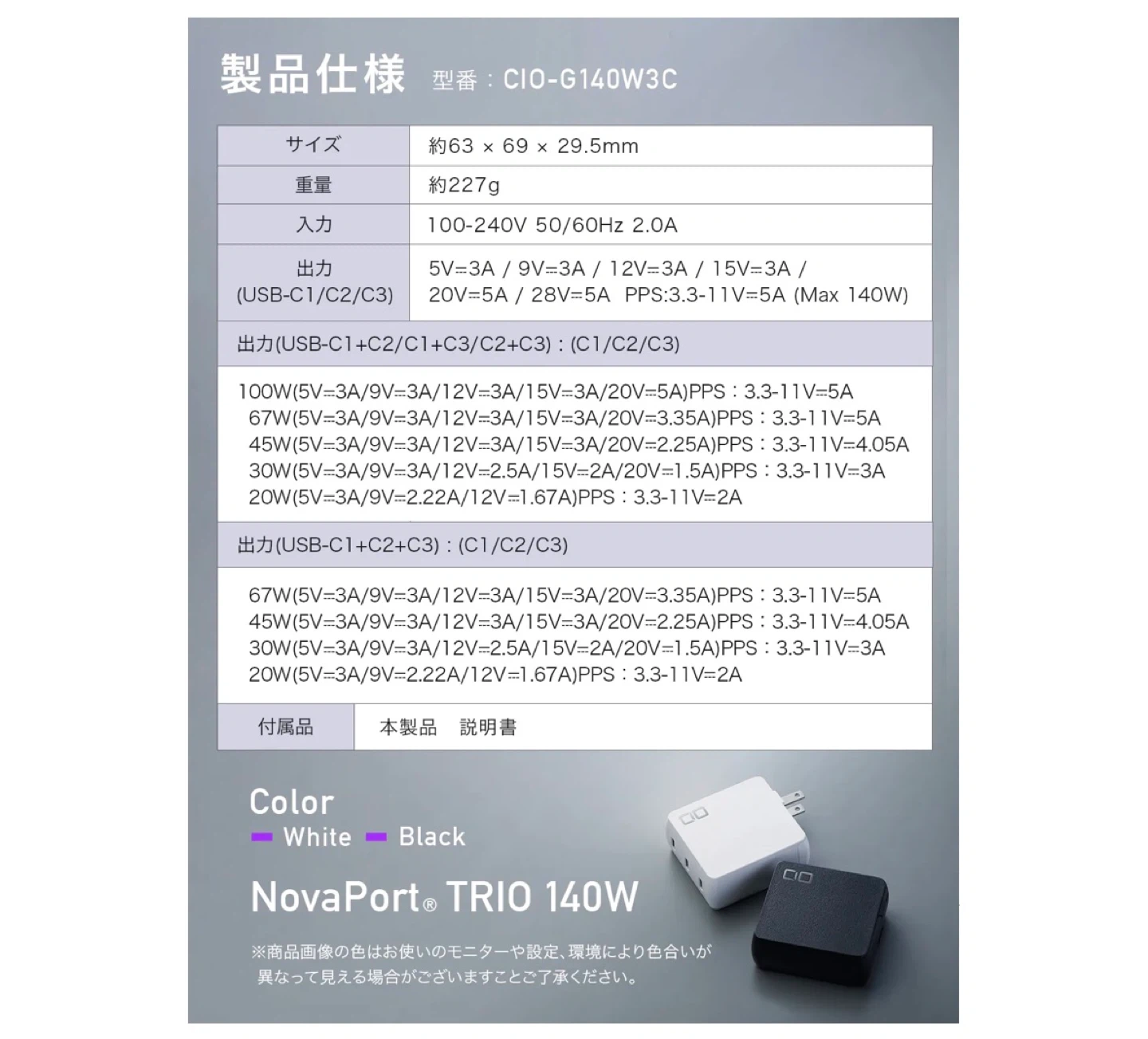 ご覧いただきありがとうございます。 超小型設計の140W出力を持つ3ポートGaN充電器で 超高速充電が可能です。 販売価格は12,980円で購入しました。 時々使用しておりましたが、とても美品かと思います。 - モデル名: NovaPort TRIO 140W - 出力: 140W - ポート数: 3ポート【Type-C】 - 色: ホワイト - 技術: GaN技術 - サイズ:約63×69×29.5mm 【状態】 使用感少なめですが、 中古品であることをご了承ください。