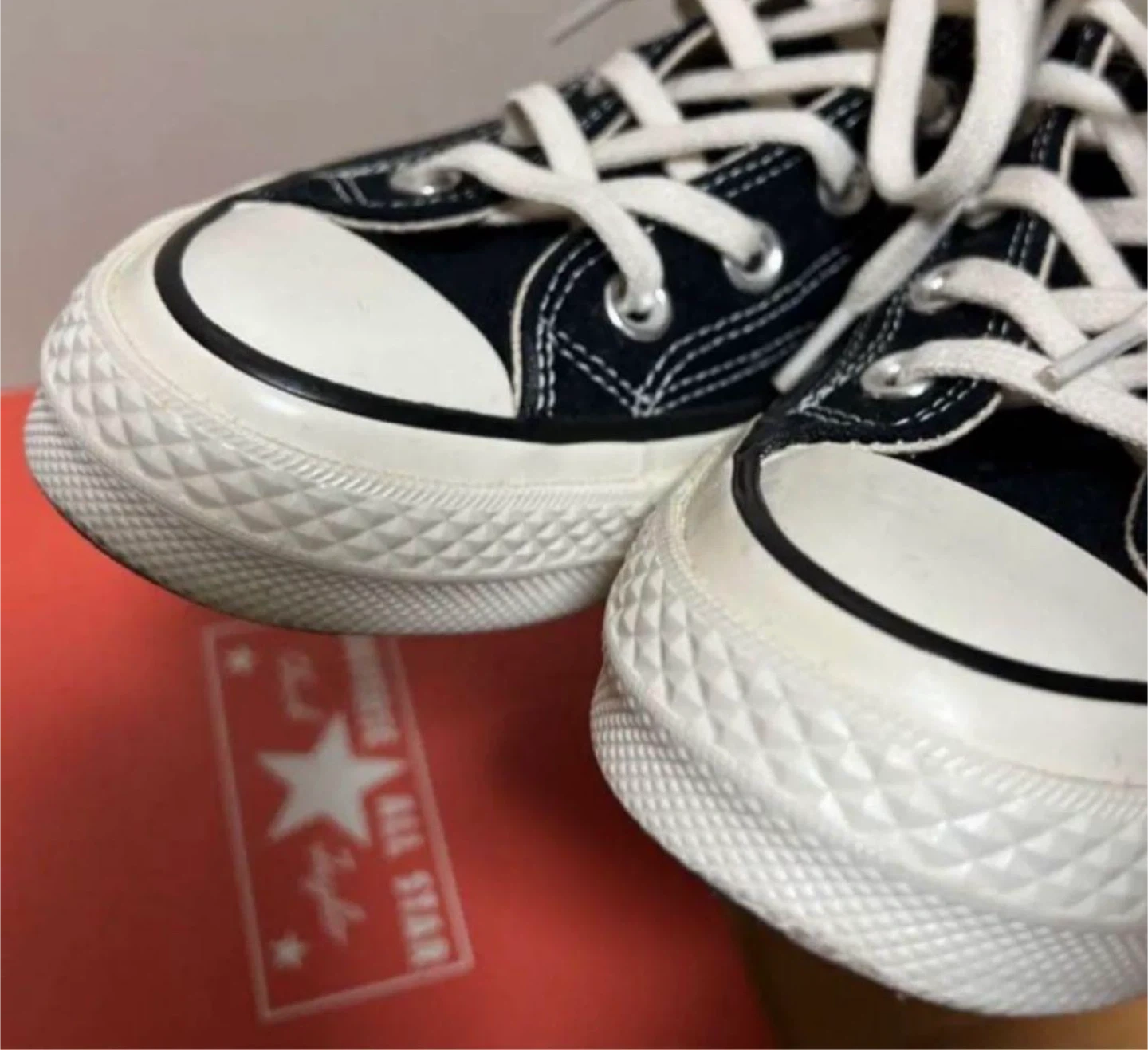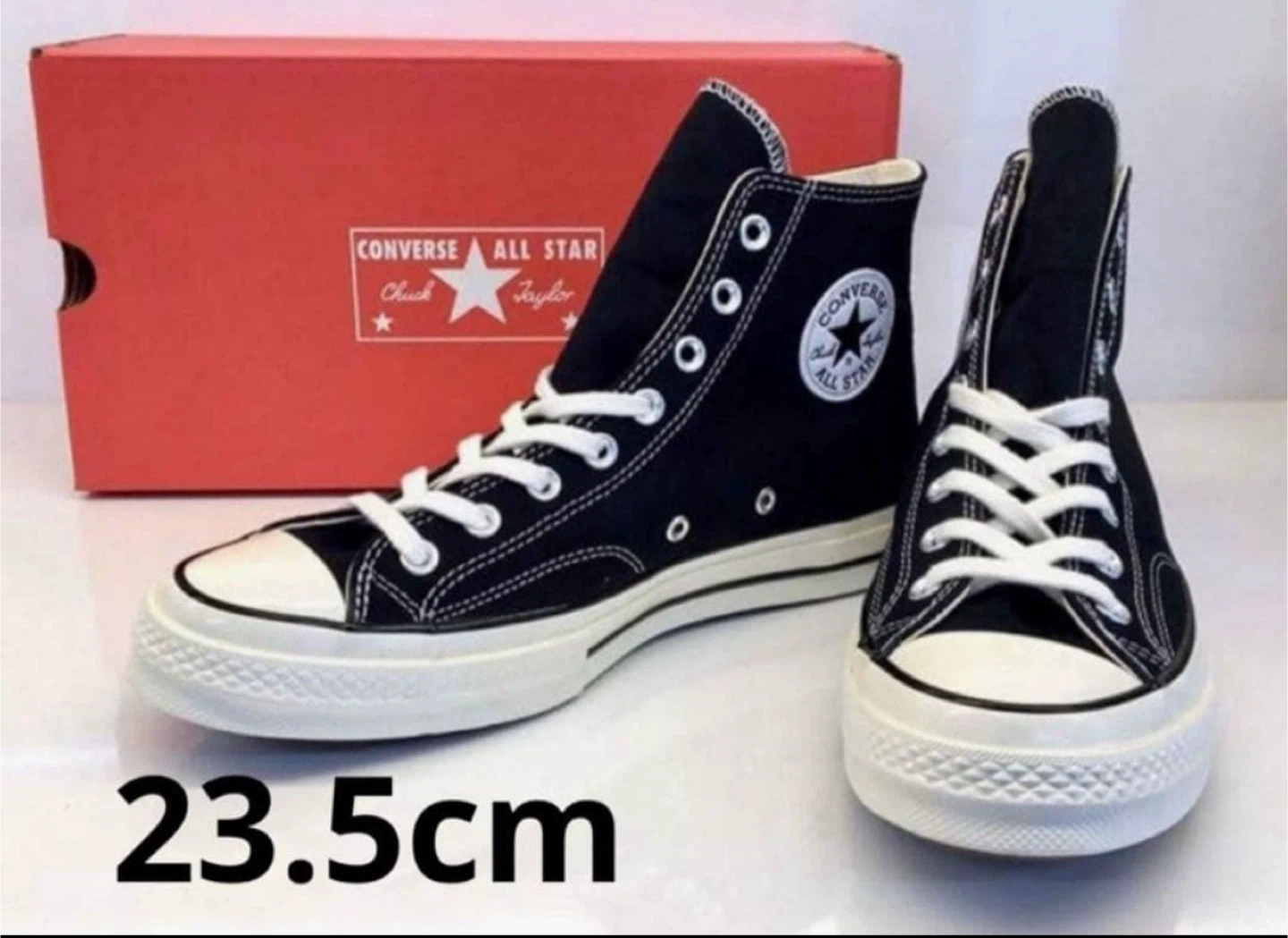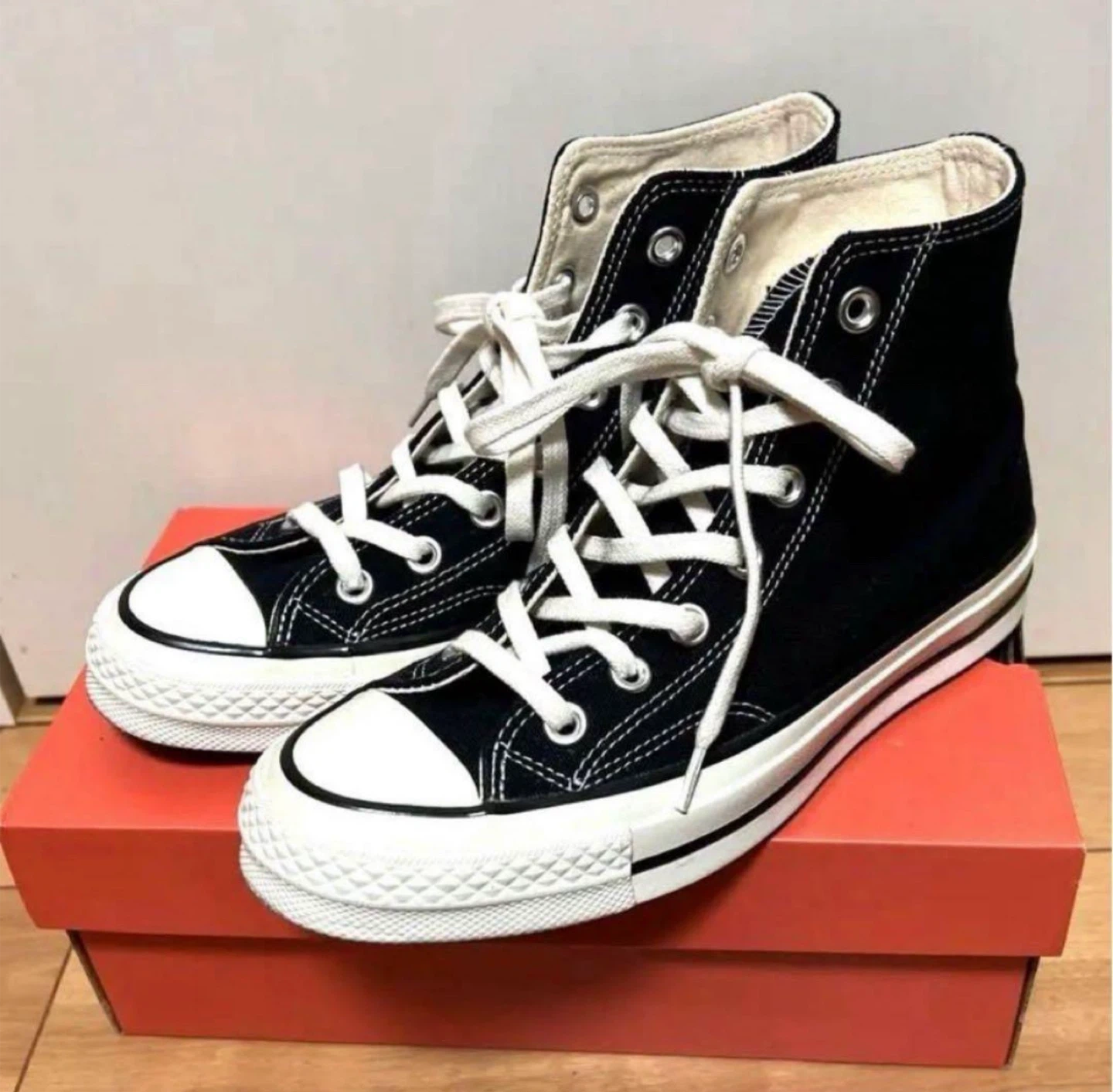 [コンバース] チャックテイラー’70 ハイカット モデル···CT70 サイズ23.5cm 日本ではもう買えないCT70です。 海外のendにて輸入購入しました。 1度しか履いてない美品です。 箱ありますが、海外からの輸入のため少し潰れてます。 自宅保管のため神経質な方はご遠慮下さい。 お値下げ不可です。 お値下げのコメントは削除いたします。 ・カラー:ブラック ・サイズ:23.5cm ・全体的にきれい ・箱あり 中古品であることをご了承ください。