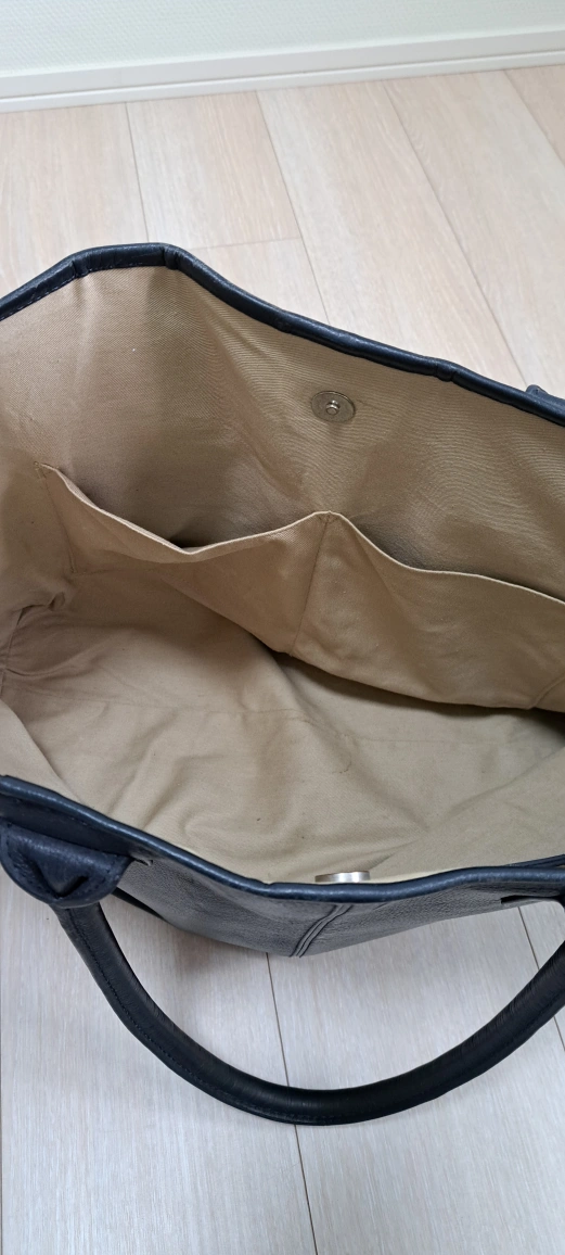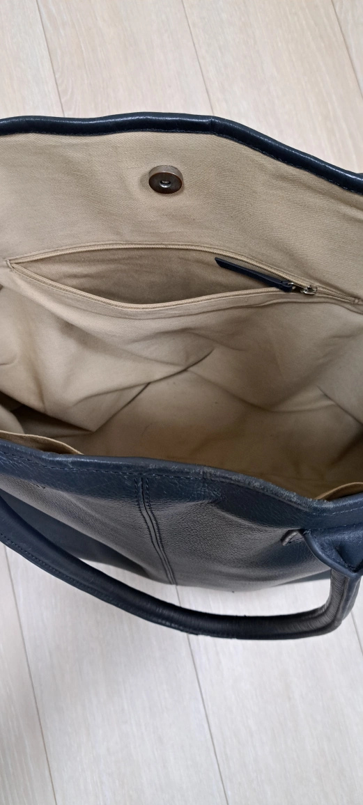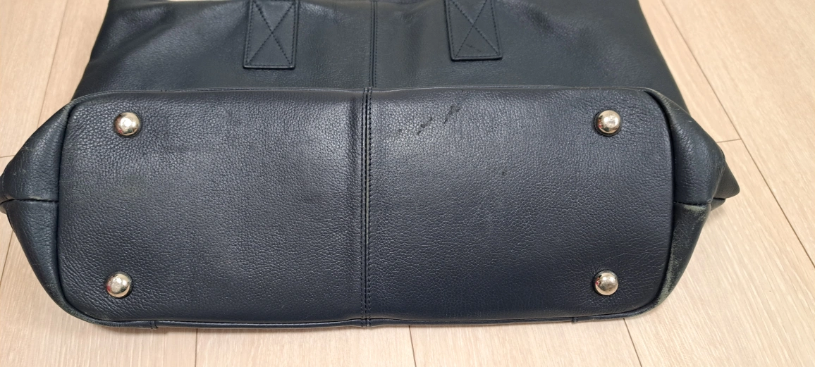 ・ブランド:Darwin ・カラー:濃紺 ・レザートートバッグ ・内側にポケットあり ・底鋲付き ・使用感あり 52㎝×34㎝ 肩掛けできます