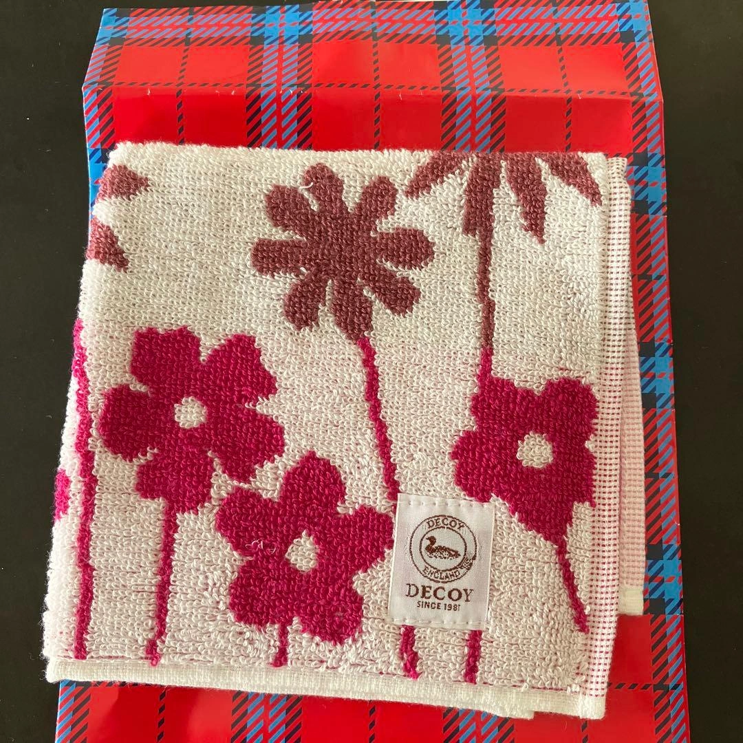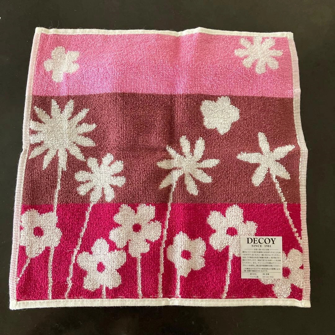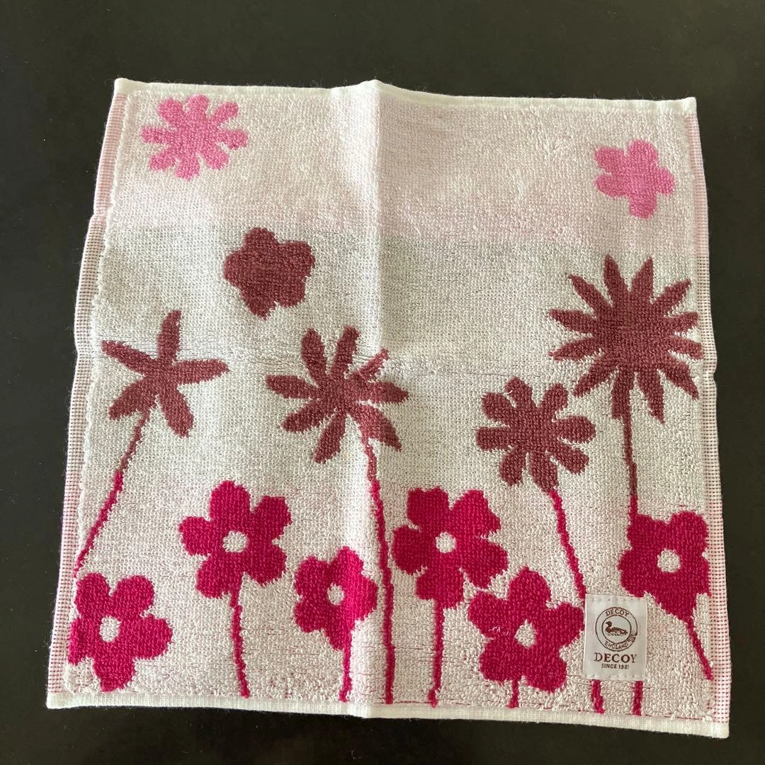 花柄デザインのタオル地ハンカチです。ピンク系の色合いが特徴です。 - ブランド: DECOY - デザイン: 花柄 - 色: ピンク系 - 素材: タオル地 - サイズ: 約25cm x 25cm ご覧いただきありがとうございます。 ご希望の方はお気軽にご連絡ください。