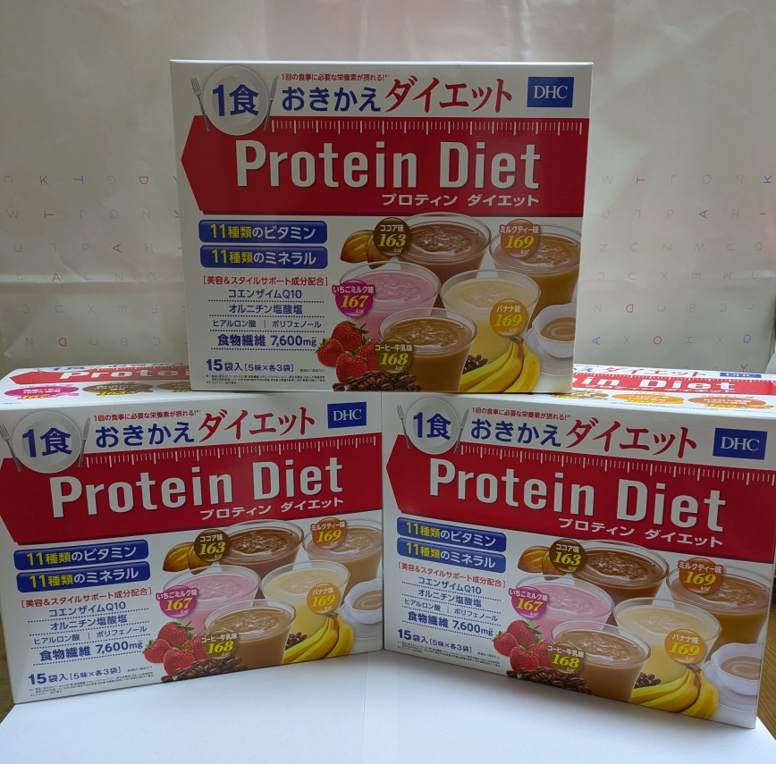 あたたかさDHCのプロテインダイエットです。未開封です。 【情報】 ブランド:DHC 商品名:プロテインダイエット 内容量:15袋(5味×3袋) 賞味期限:26.07 【状態】 新品未開封 中古品であることご了承ください