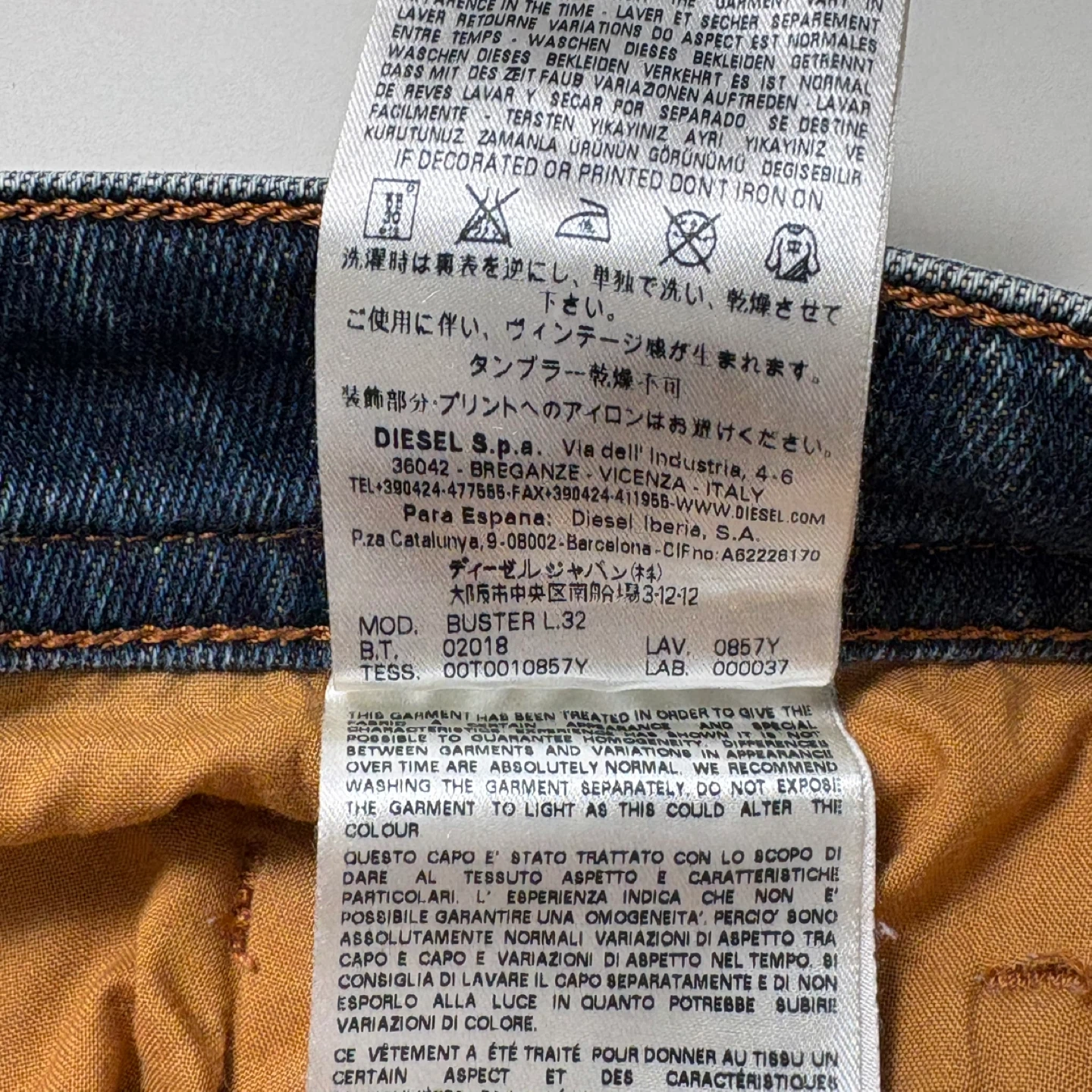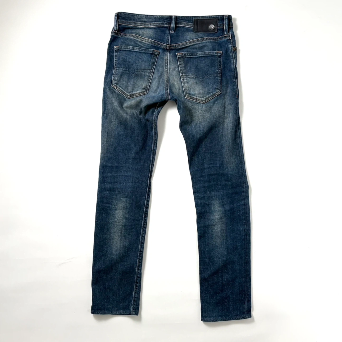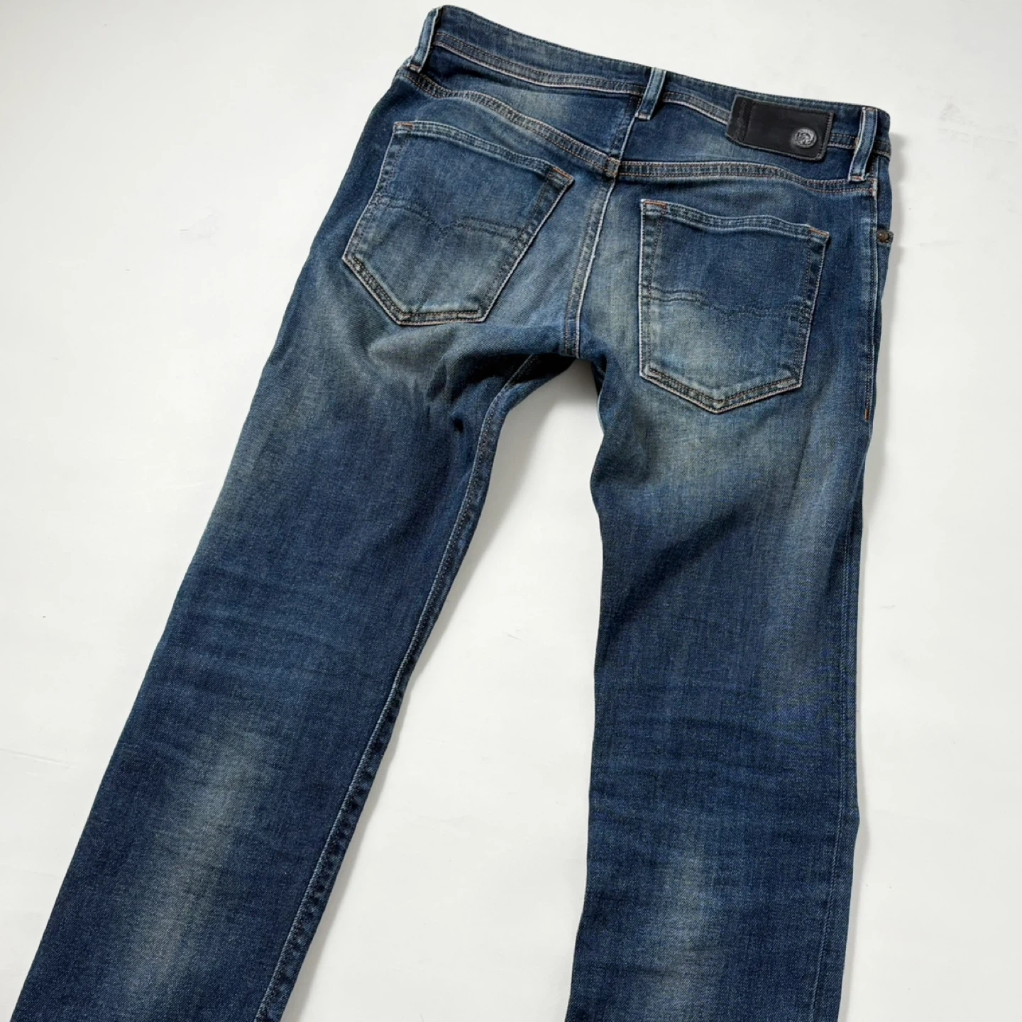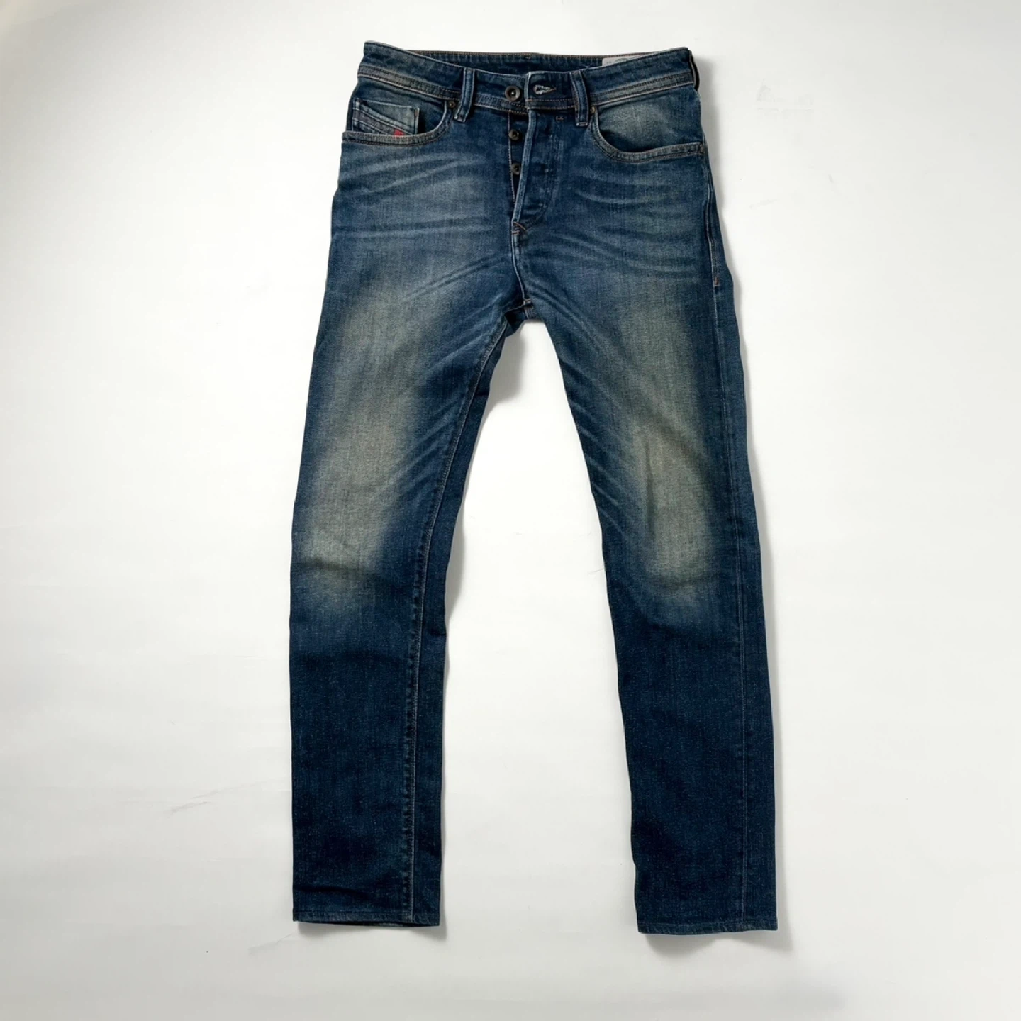 DIESEL BUSTERレギュラースリムテーパード W26 正規品 メンズ  目につくような汚れやダメージはありません。 美しいラインのレギュラースリムテーパードデニム ウォッシュ加工とヒゲ・アタリの風合いが絶妙で、Tシャツ1枚でもサマになる一本です。 ウエスト平置き:37.5cm 前股上:26cm 股下:76cm 渡り:26cm 裾幅:16.5cm (素人寸です。)