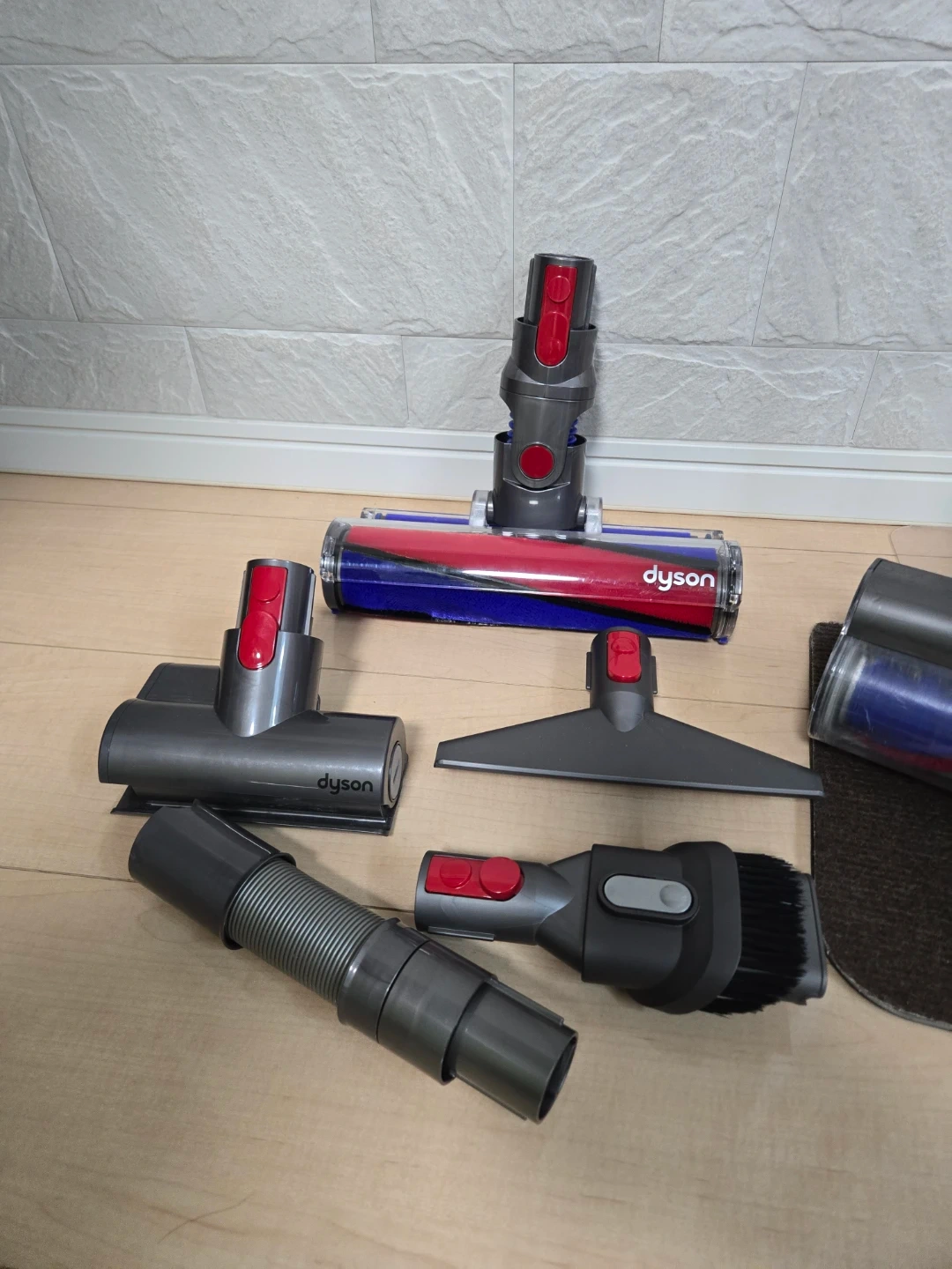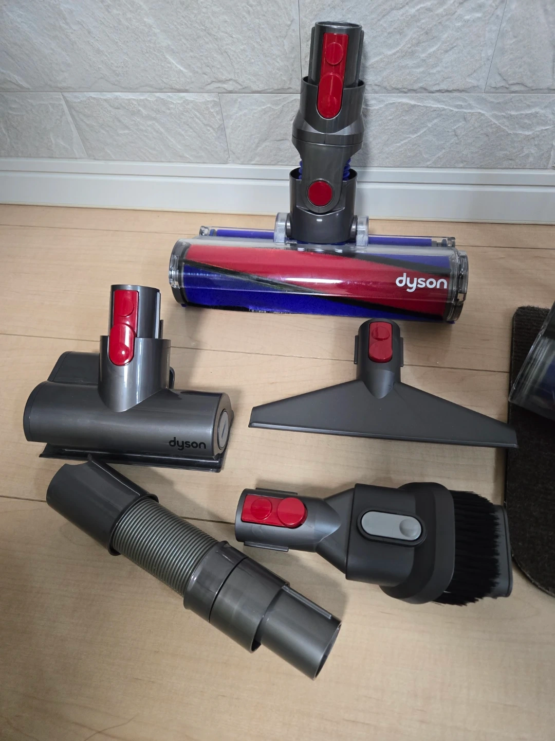 ダイソンの掃除機です。 ・ブランド:ダイソン Dyson SV10 V8 Absolute ・使用感やキズあり ・昨年バッテリーを社外品に交換しています ・特に故障とかはしていませんが、購入当初よりヘッドの中の回るやつが、最初手で少し回す必要があります。(ヘッドを交換しても同じ状況だったので、そういうものなのかと思って使ってました。) ・アタッチメントはほとんど使ったことないので、全部きれいです ・掃除機を立て掛ける台もお付けします 普通に使ってた中古品のため、ノークレームノーリターンでお願いします。