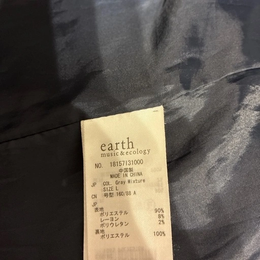 Lサイズ 着用回数は数回です。 濃いグレーで、裏地は紺色です。 クリーニング済み。 アースミュージックアンドエコロジーの商品です。 平日18:30以降、土日祝は応相談。 当方近くまでお越しください。 ご希望の方はお気軽にご連絡ください。