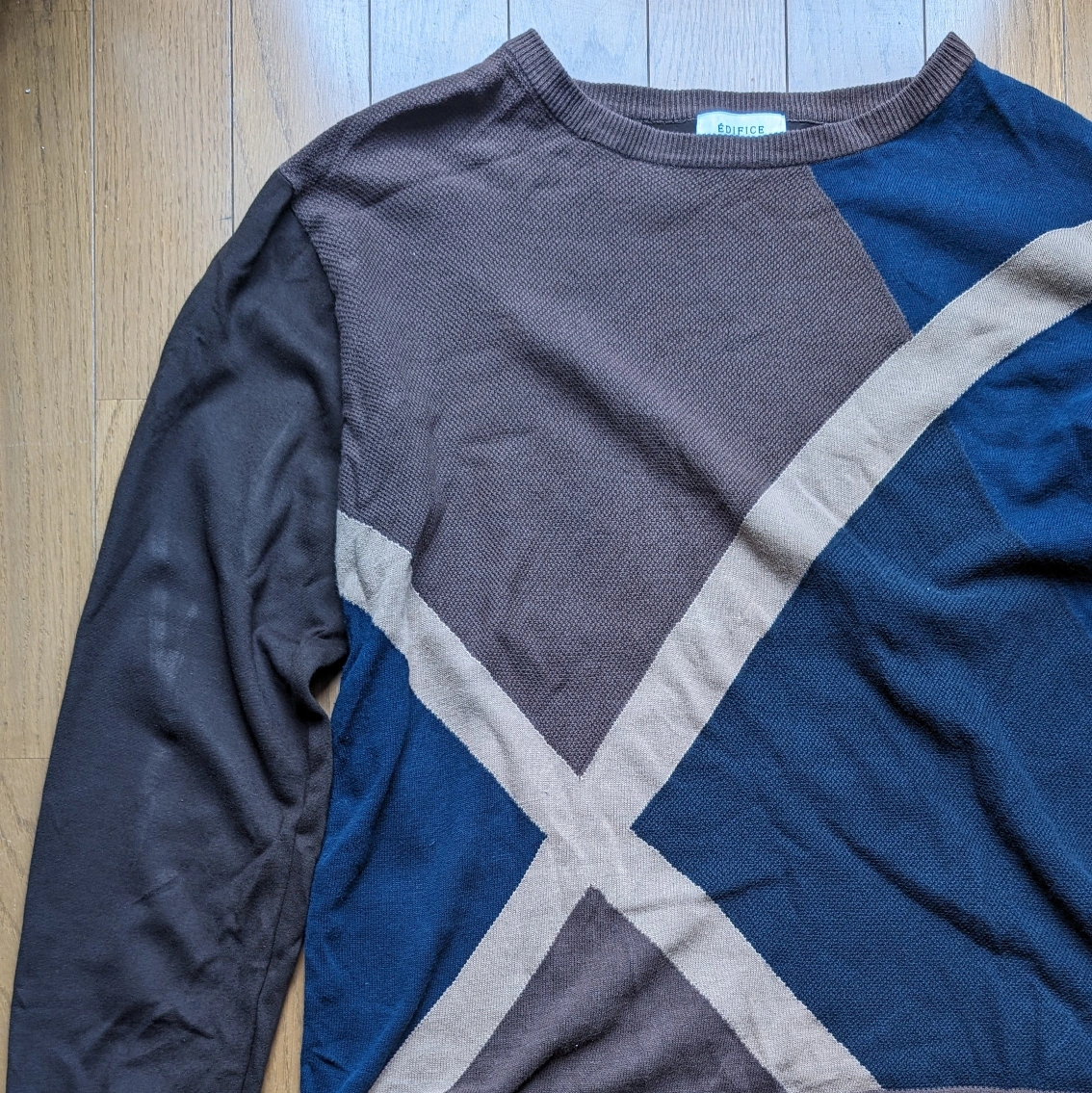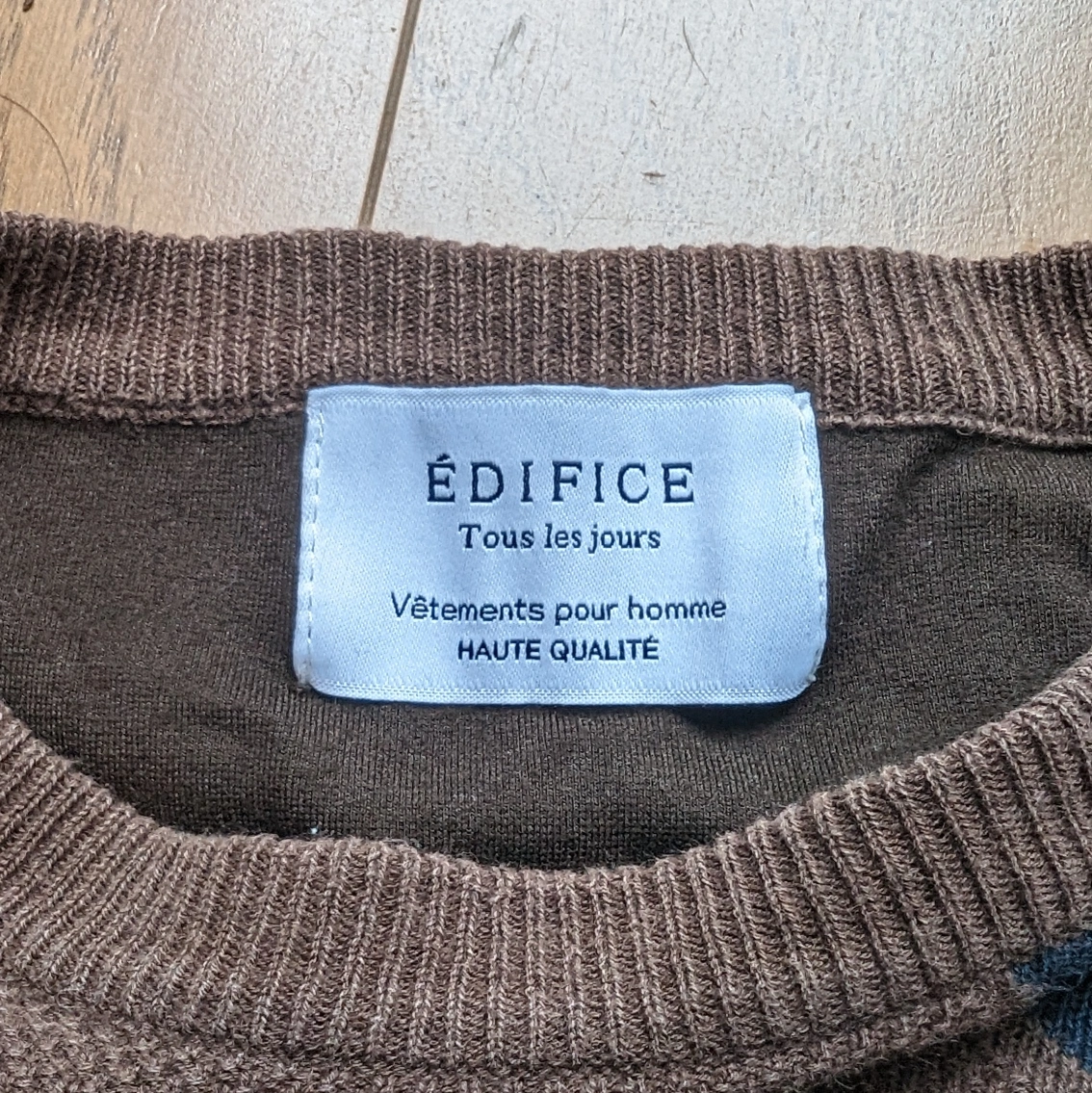 あたたかさエディフィスの薄手ニットです、クローゼットがいっぱいになりましたので出品します。 多少の使用感あり、右袖裏に、塗料の汚れ。シルエットはきれいめで、3シーズンは着れる便利なトップスです。 肩幅···48cm 身幅···50cm 袖丈···69cm 着丈···61cm ネック...クルーネック カラー...ブラウン 袖丈...長袖 柄・デザイン...チェック 素材...ニット