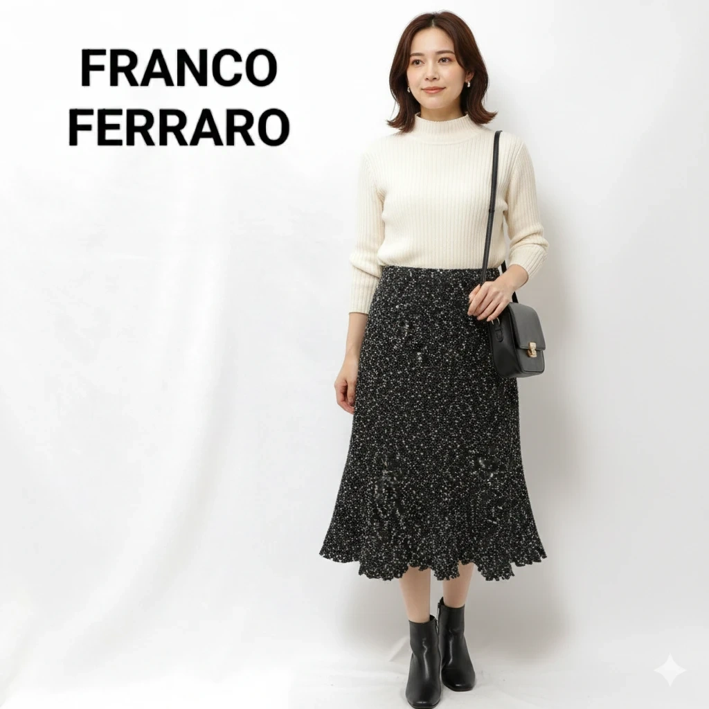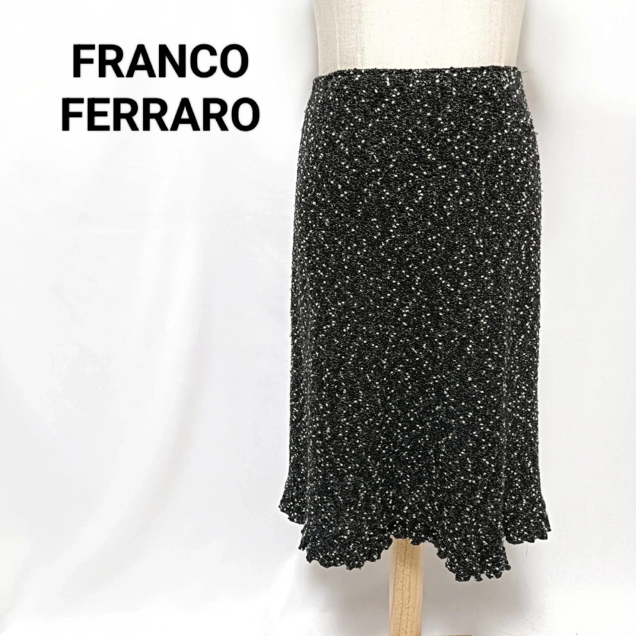 FRANCO FERRARO ツイード調ニットスカート ロング丈 フレア 秋 冬
