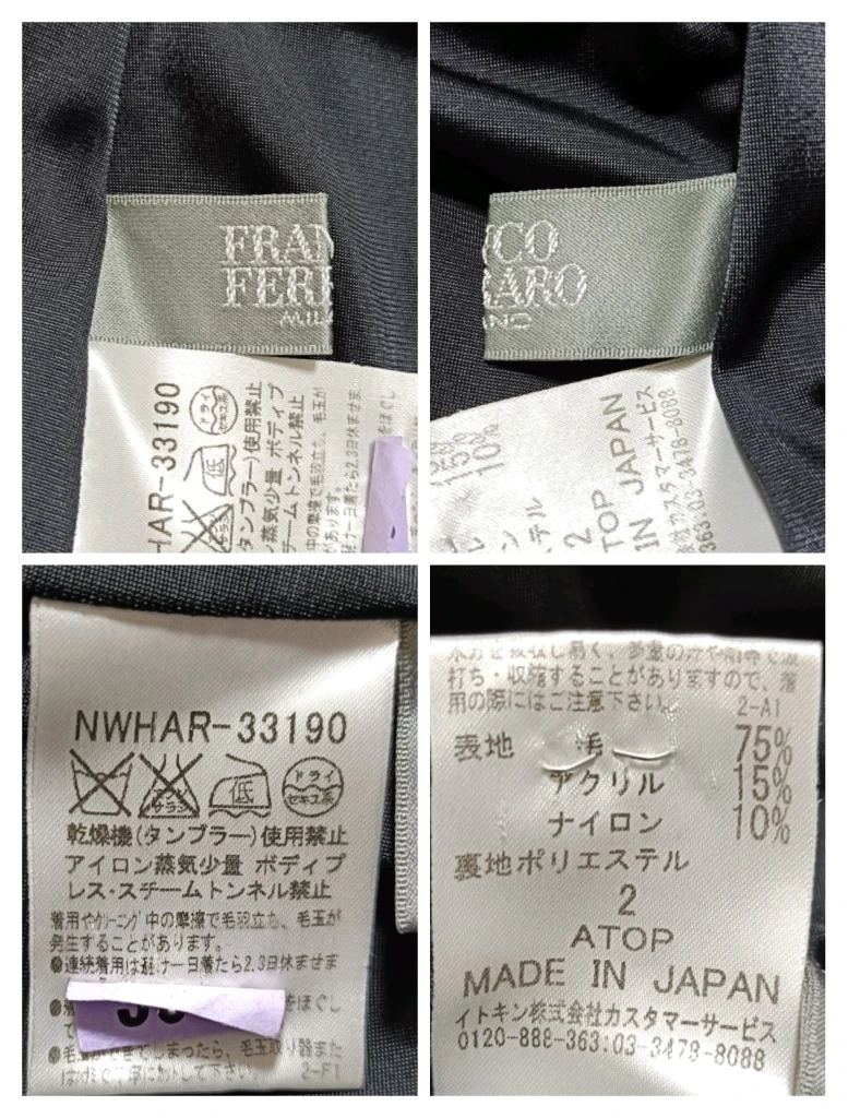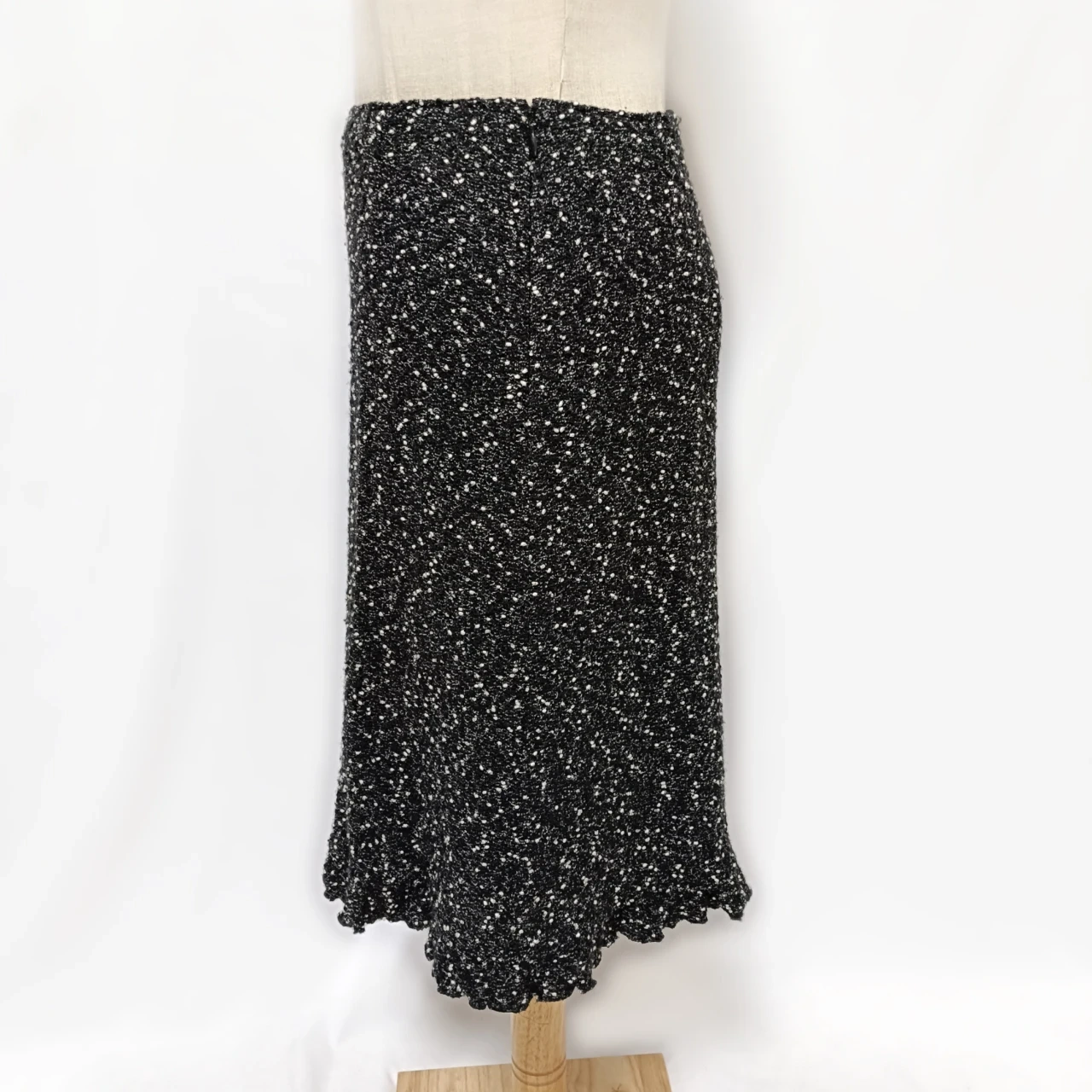 ご覧いただきありがとうございます! FRANCO FERRARO(フランコフェラーロ)の上品でエレガントなロングスカートです。 ​黒地に白のネップ(斑点)が編み込まれたツイード調のブークレニット素材で、高級感があります。 秋冬のコーディネートを華やかに彩ってくれる一枚です。 □商品名□ ​​FRANCO FERRARO ツイード調ニットスカート ロング丈 フレア 秋 冬 □ブランド□ FRANCO FERRARO フランコフェラーロ □表記サイズ□ 2 (Mサイズ相当) □実寸サイズ(cm) □ 【平置きサイズ】 ウエスト:34 着丈:58 ※実寸につきまして多少の誤差はご了承ください。 ※表記サイズだけではなく実寸のサイズをご確認ください。 □カラー□ 黒(ブラック) × 白ネ ップ モノトーン □素材□ 表地:毛75% アクリル 15% ナイロン10% 裏地:ポリエステル □コンディション□ 目立った汚れやダメージなど特にございません。 ※汚れはできる限り写真にて掲載しております。まずは画像をご確認ください。 どうぞよろしくお願い致します。 □商品管理番号□ EE2-P-5574